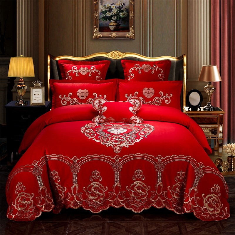 当前位置: 91家纺网 > 商品网购 > 床品套件 > 四件套 > 全棉普通四件套 > 布乐意 2025新款全棉绣花大红婚庆四件套多件套直播皇室恋人