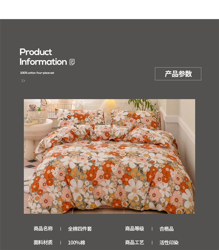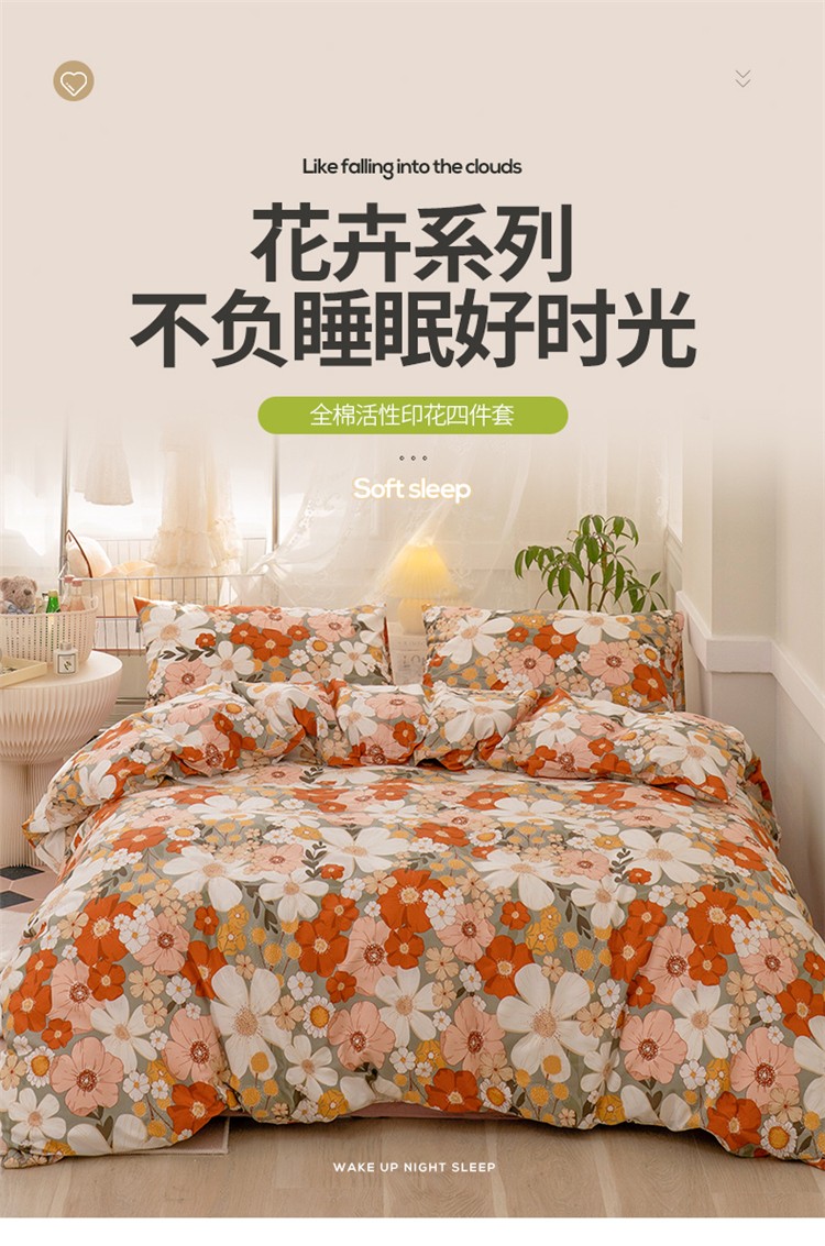 窝米 2022新款全棉印花活性四件套花卉系列 朝颜