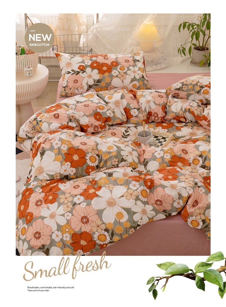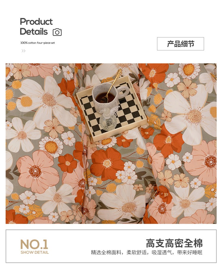 窝米 2020春夏新品全棉13372四件套小波西风系列小花花,小花花