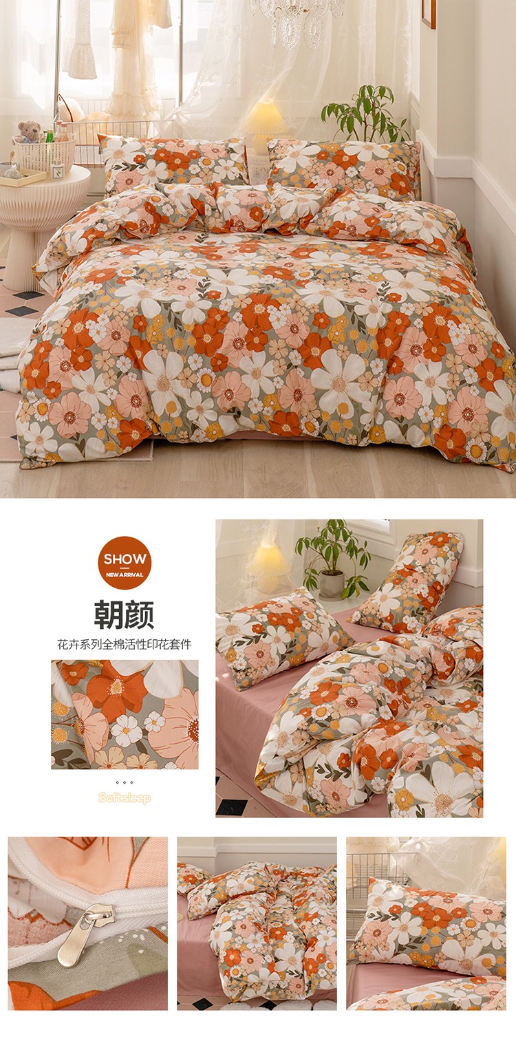 商品名称:窝米 2022新款全棉印花活性四件套花卉系列 朝颜