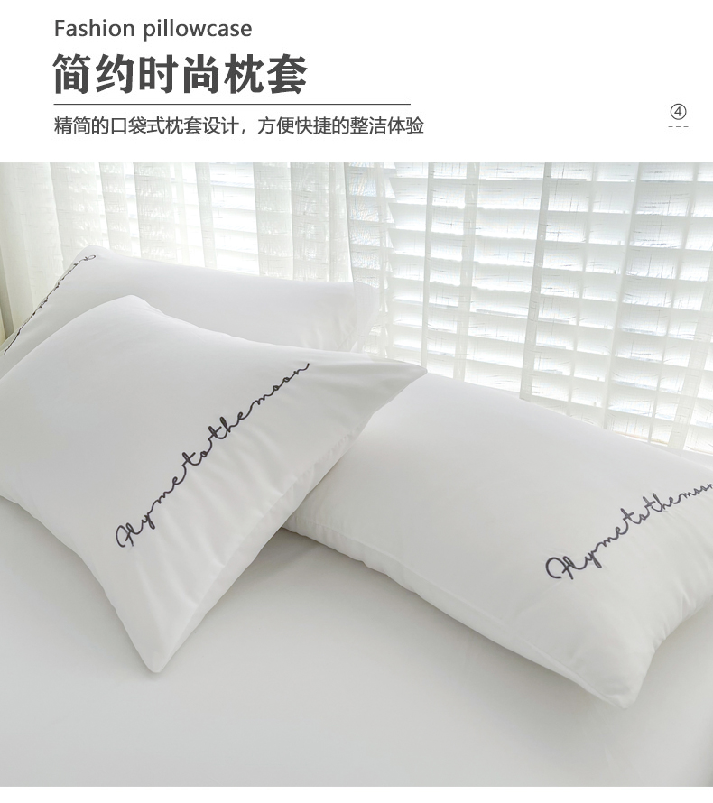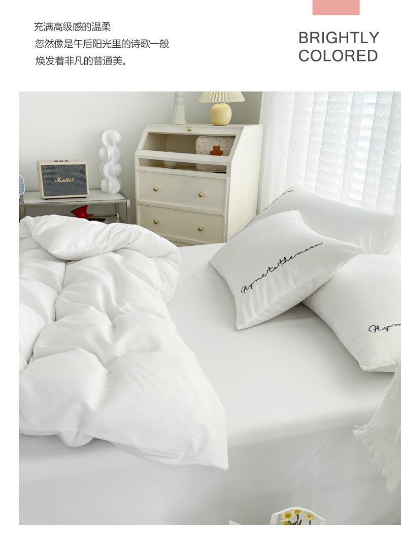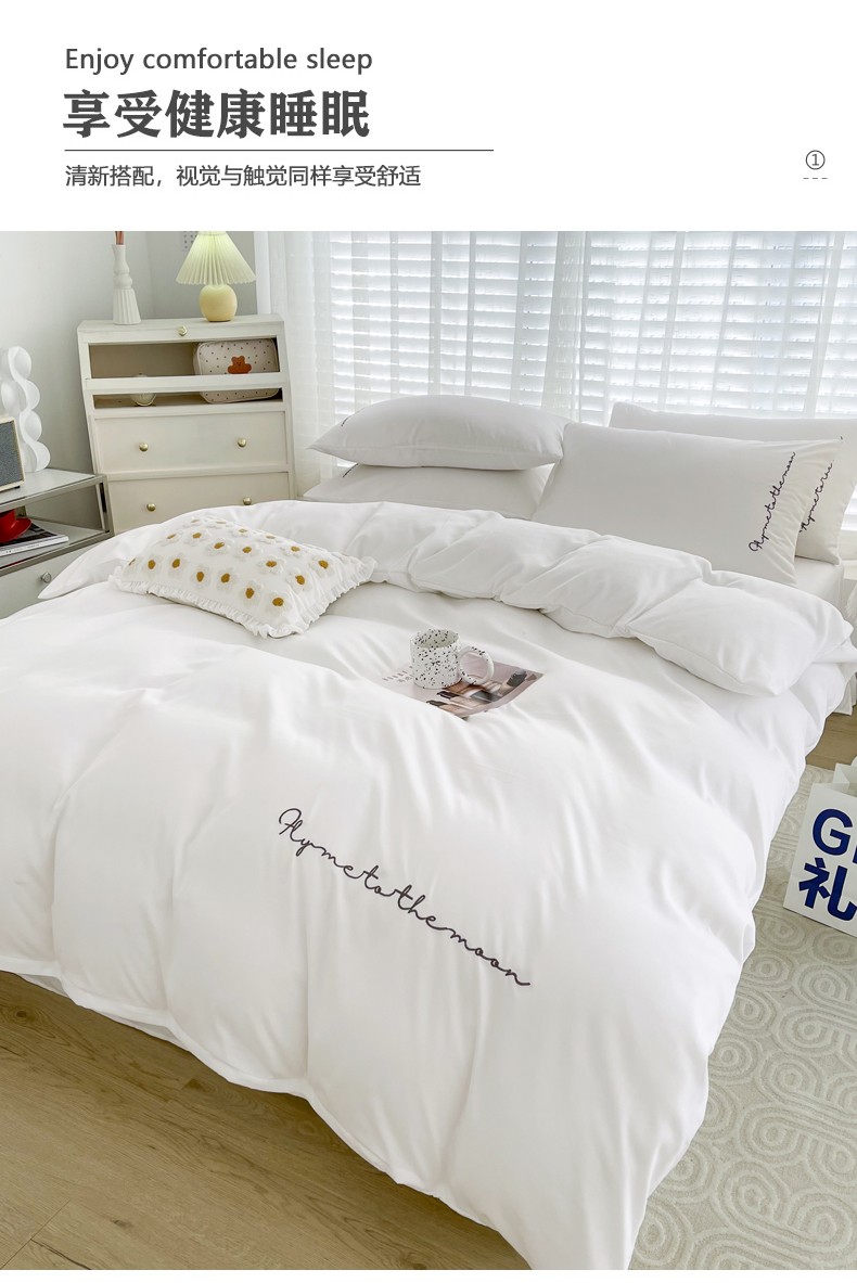 (总)曼谷家纺纯色简约刺绣四件套柔软磨毛床上用