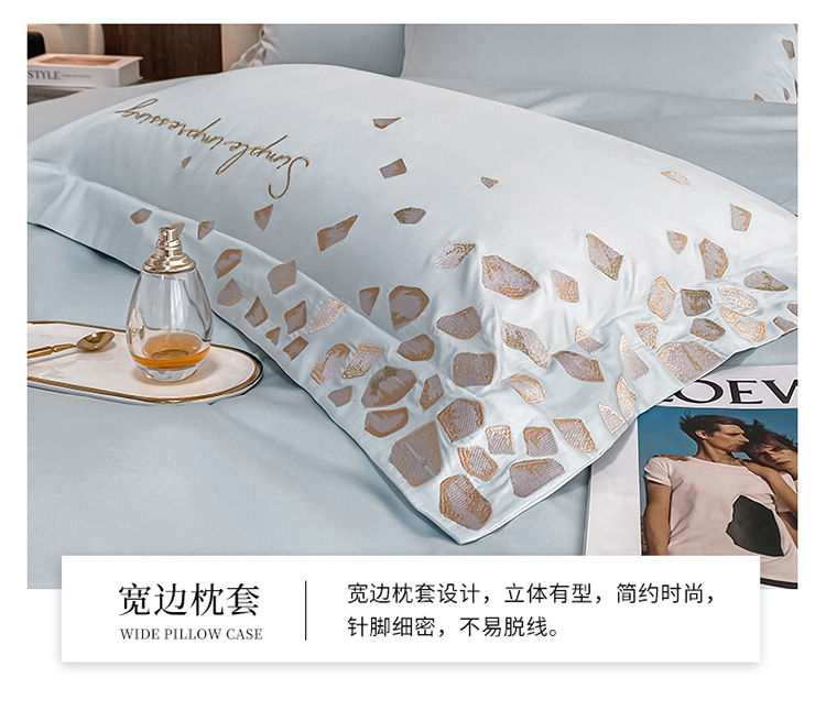 商品名称:爱缦 2022耀影系列100支长绒棉奥棉四件套 梦幻蓝