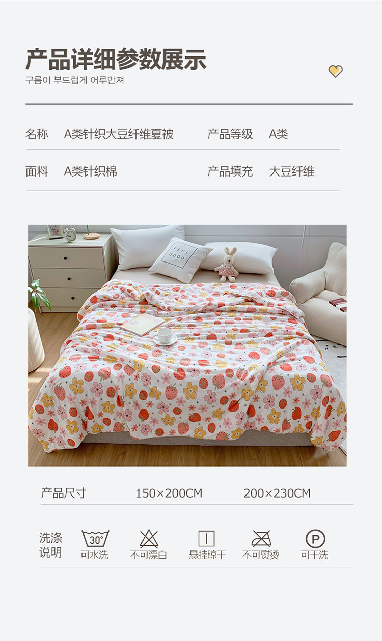 商品名称:佰亿莱 2024新款针织大豆纤维夏被 草莓乐园