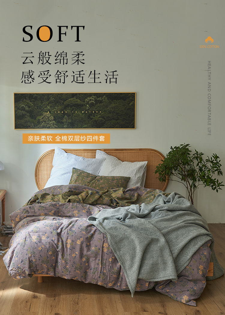 商品名称:(总)2022新款色织提花全棉双层纱四件套