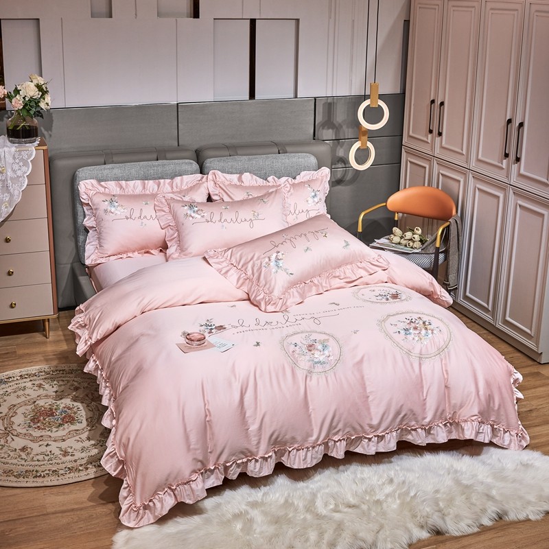 (总)星尚家纺 2024新款全消光230g牛奶绒刺绣保暖四件套-花漾,晨雾绿,豆沙粉,樱花粉