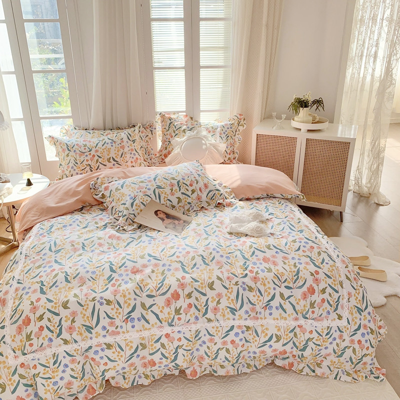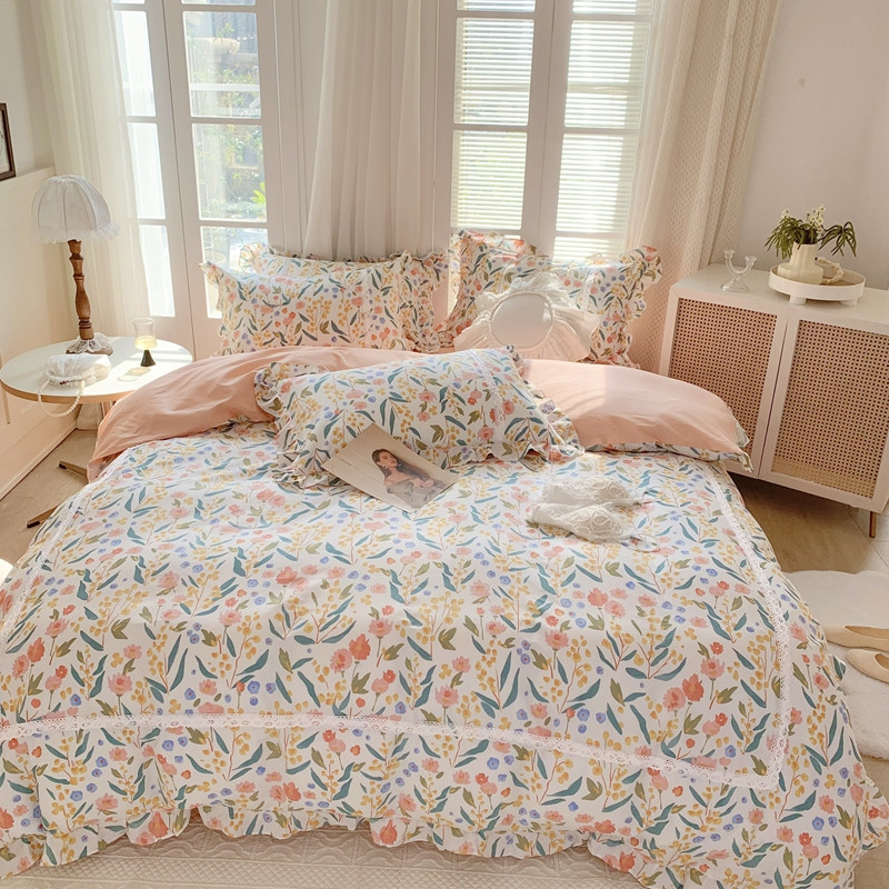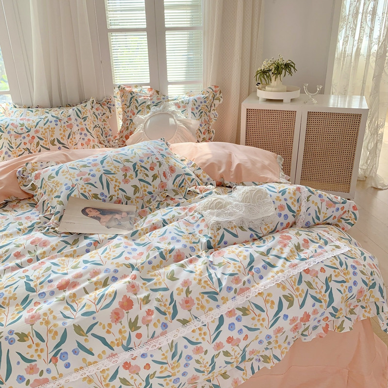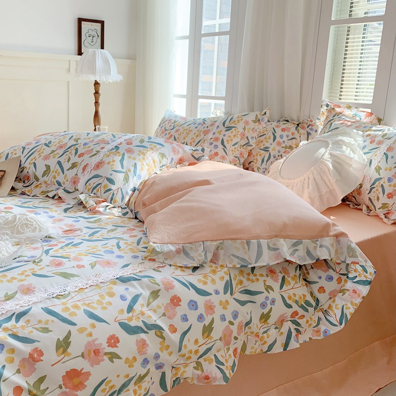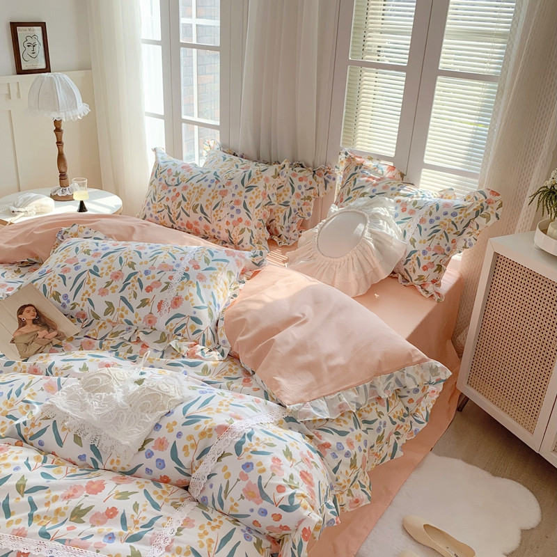 眠屿 2022新款全棉小碎花法式花边四件套 春华秋实