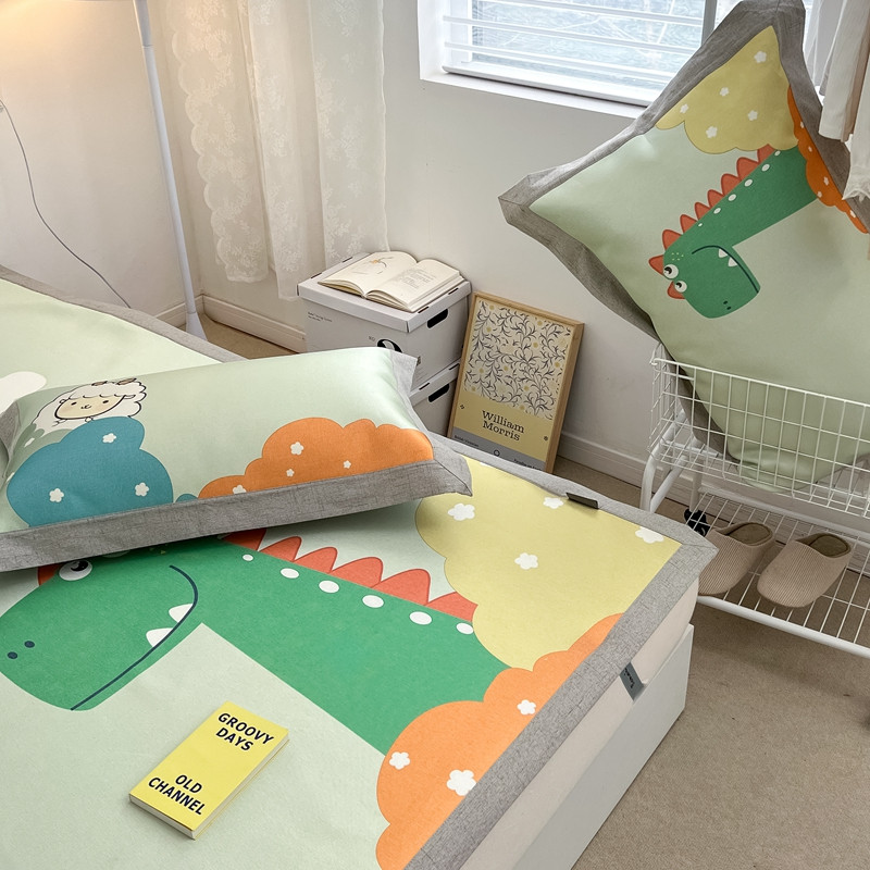 商品名称:本希 2022新款水洗数码印花卡通简约冰丝席床席款 恐龙世界