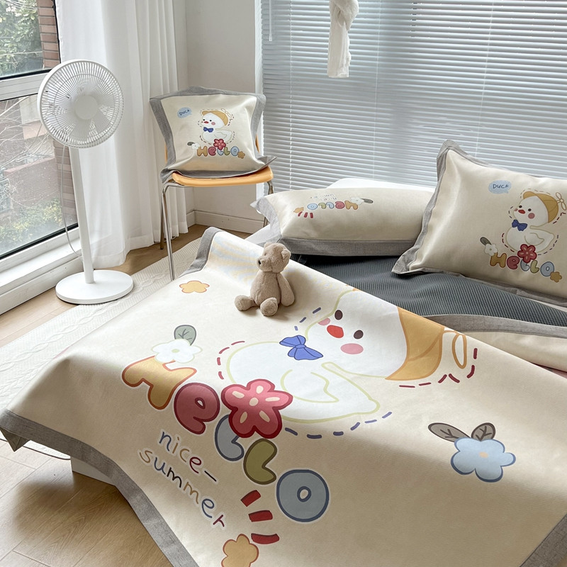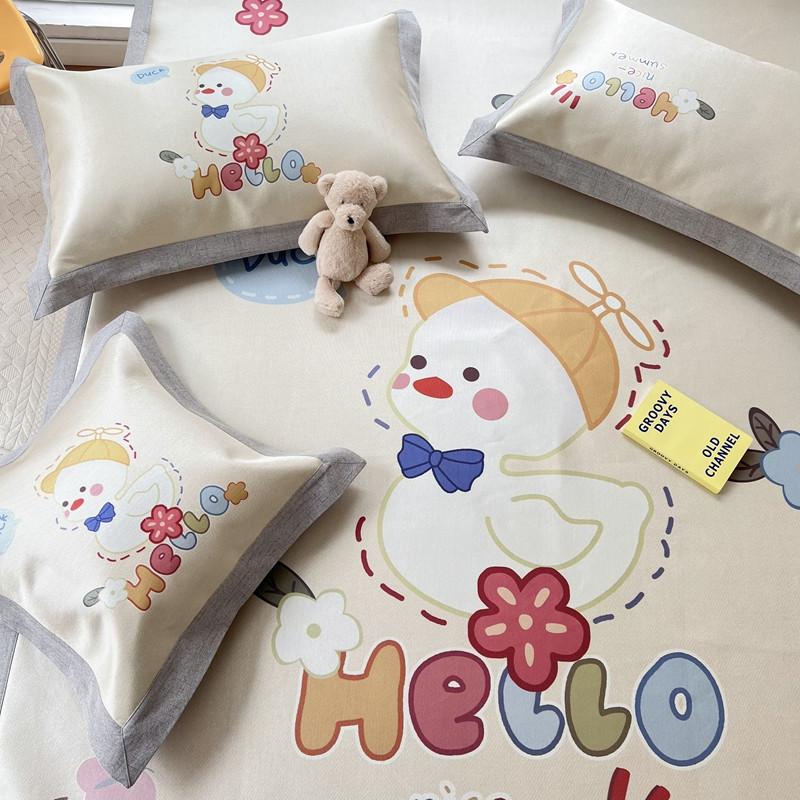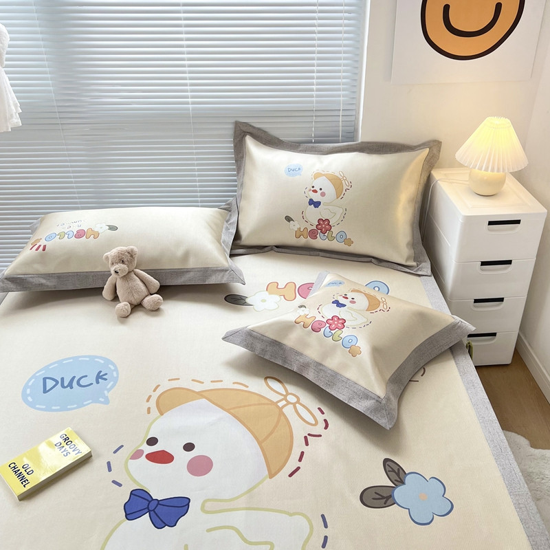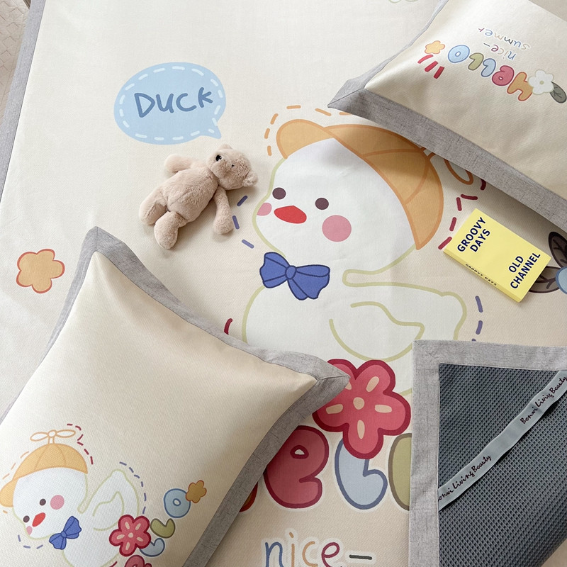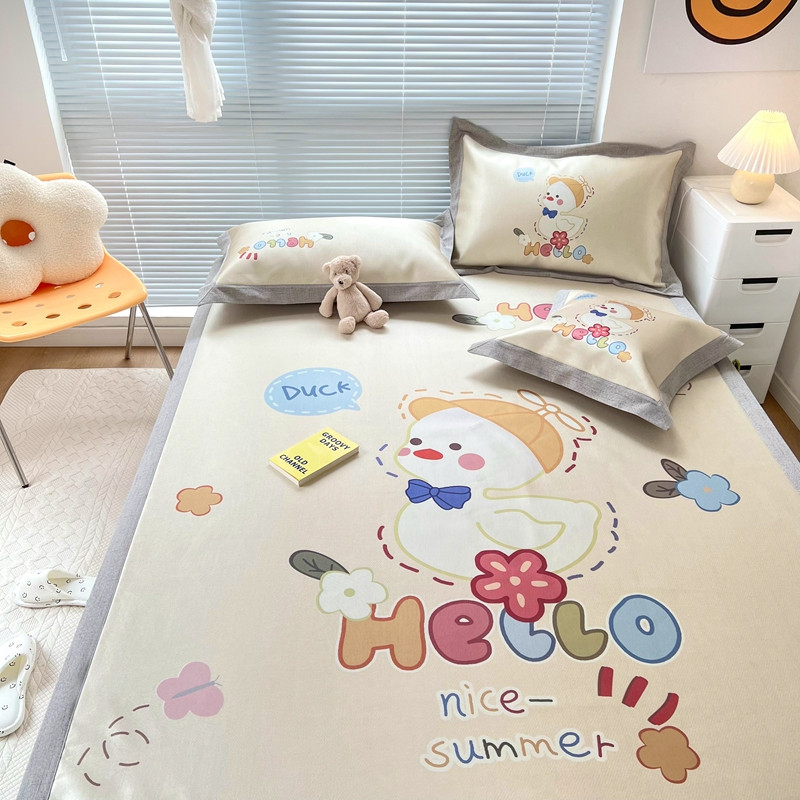 商品名称:本希 2022新款水洗数码印花卡通简约冰丝席床席款 小黄鸭