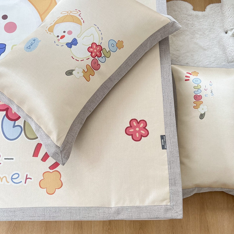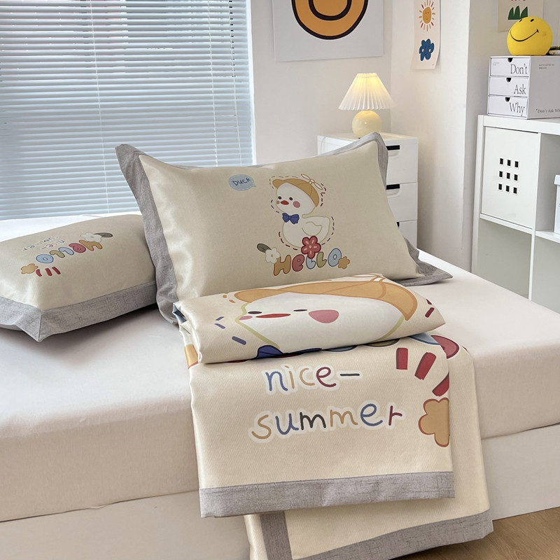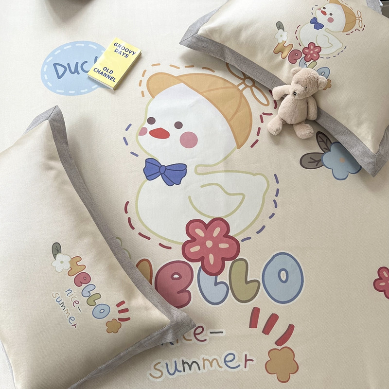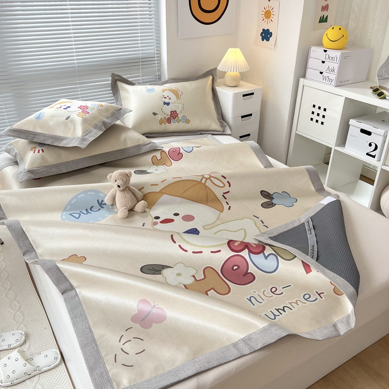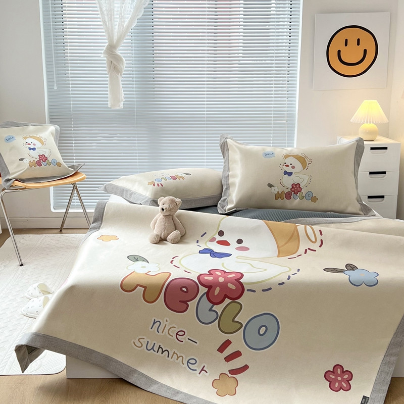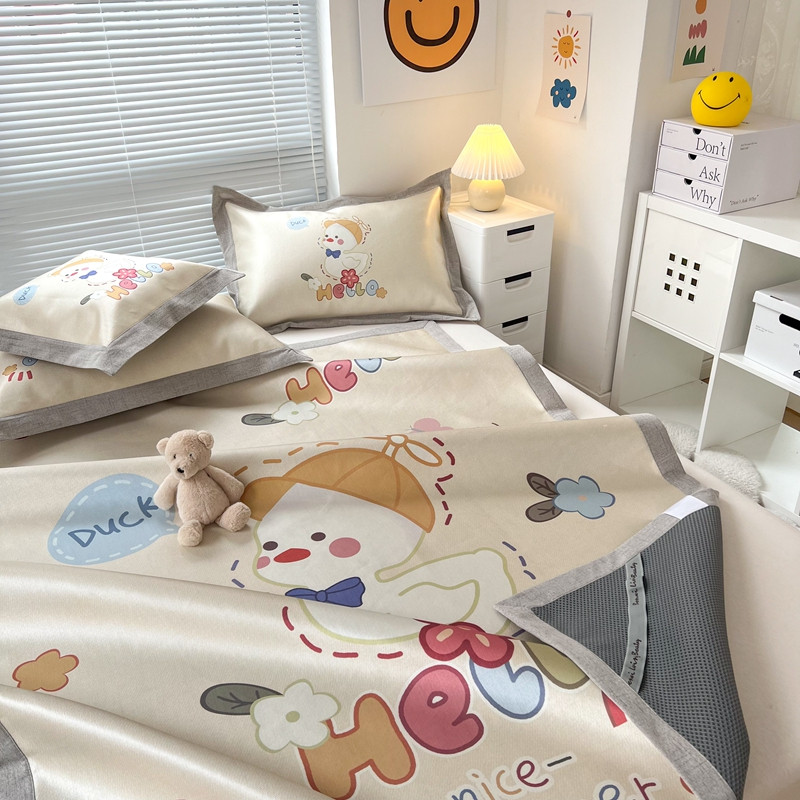 商品名称:本希 2022新款水洗数码印花卡通简约冰丝席床席款 小黄鸭