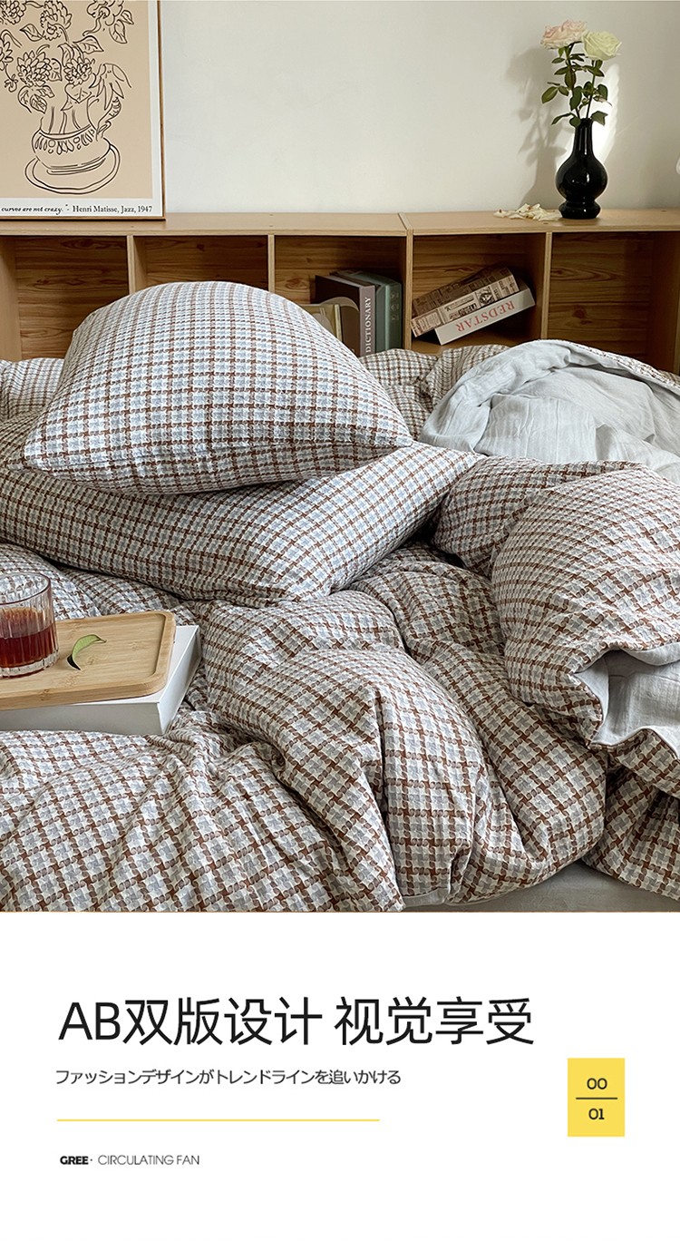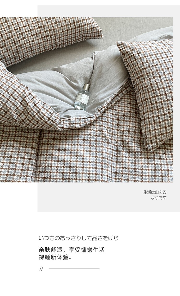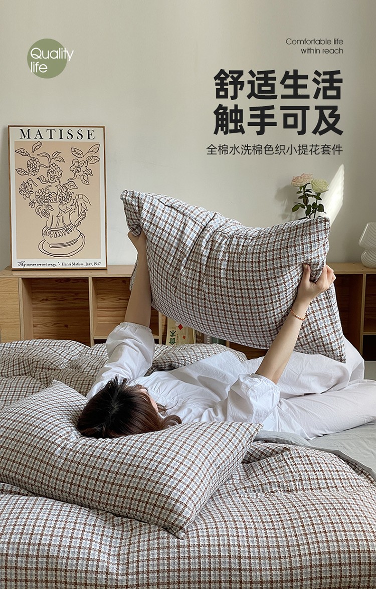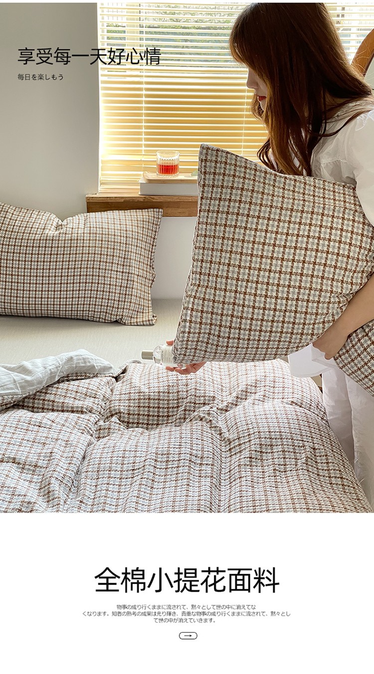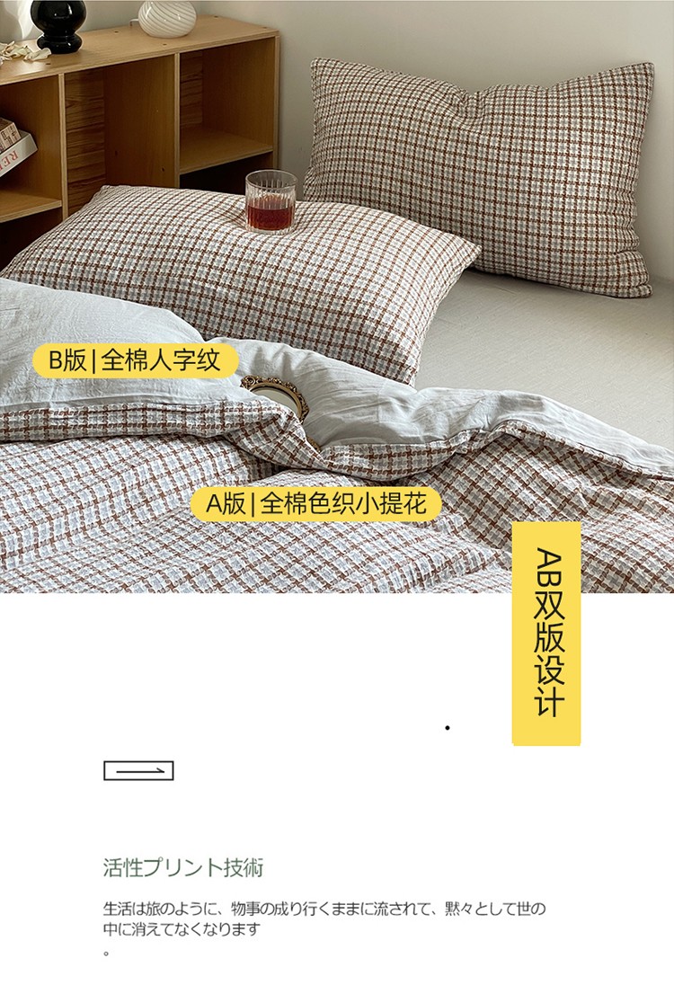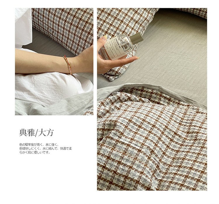 艾咪 新款全棉水洗棉色织小提花四件套/三件套 梵希-豆棕