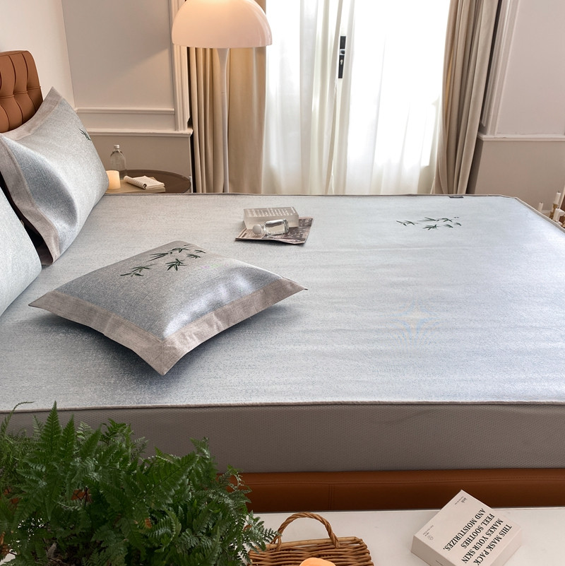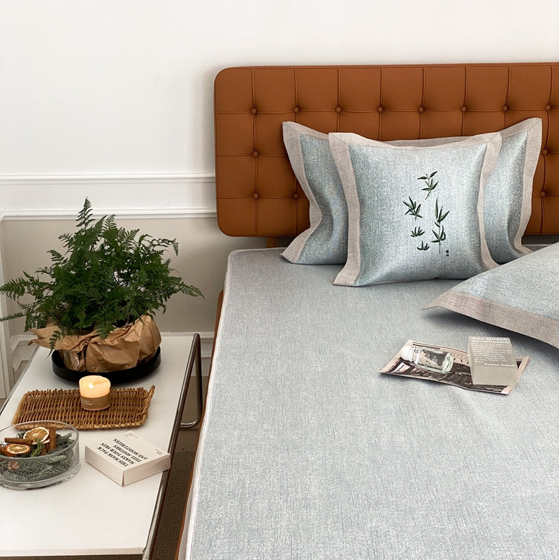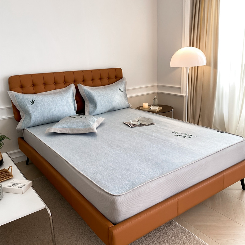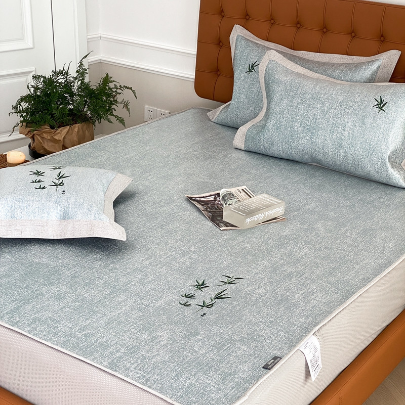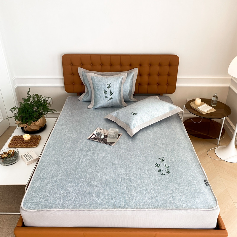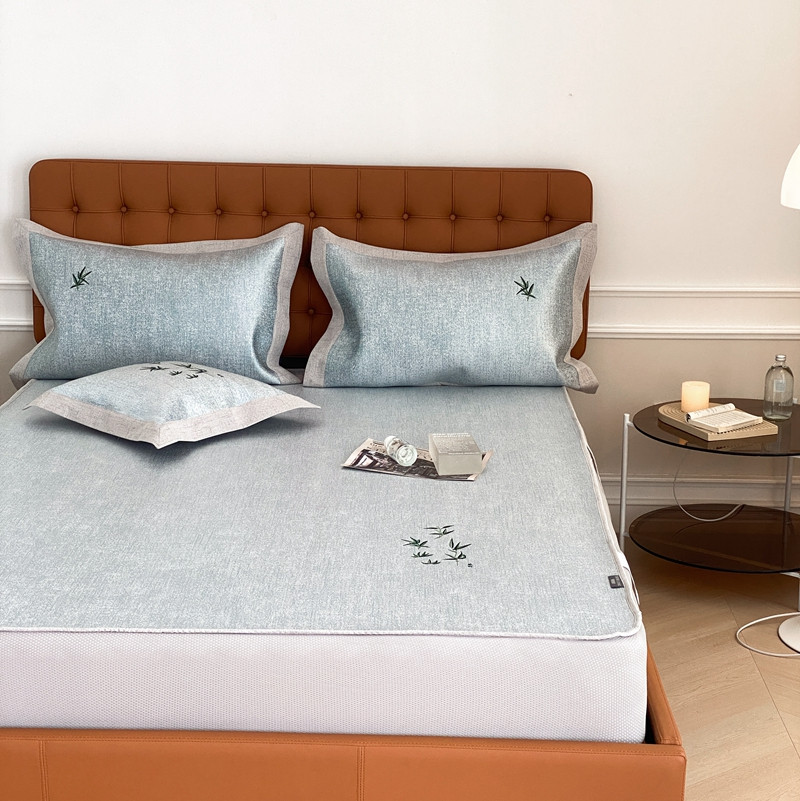 本希 2022新款轻奢刺绣款可水洗冰丝席-床笠款 竹韵刺绣床笠款