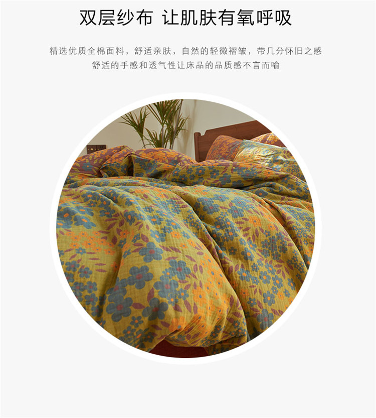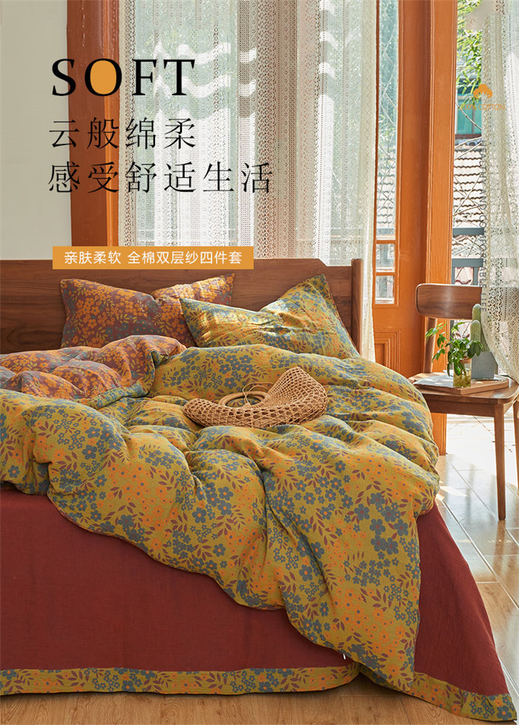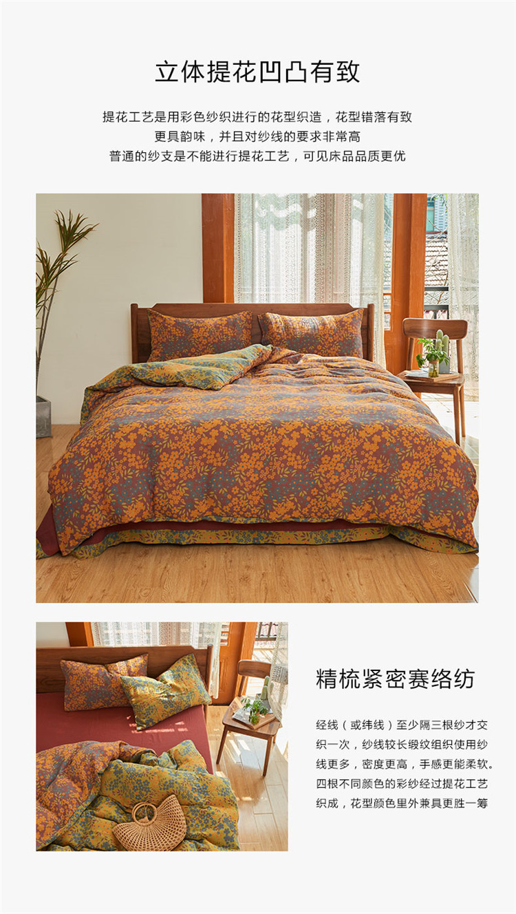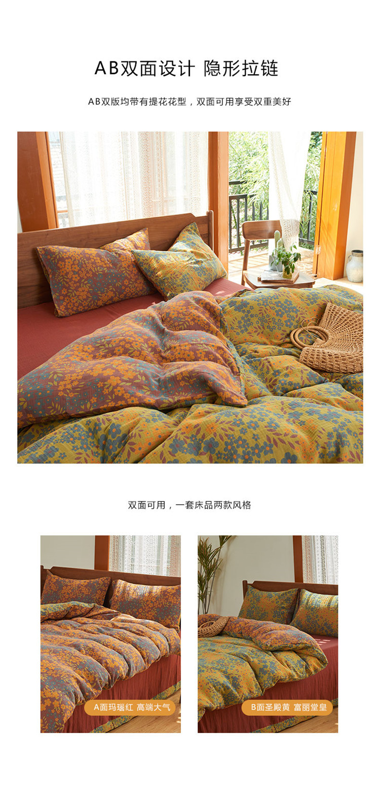 总安莱生活 2022新款色织提花全棉双层纱四件套-花团锦簇