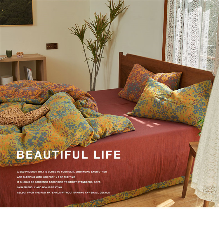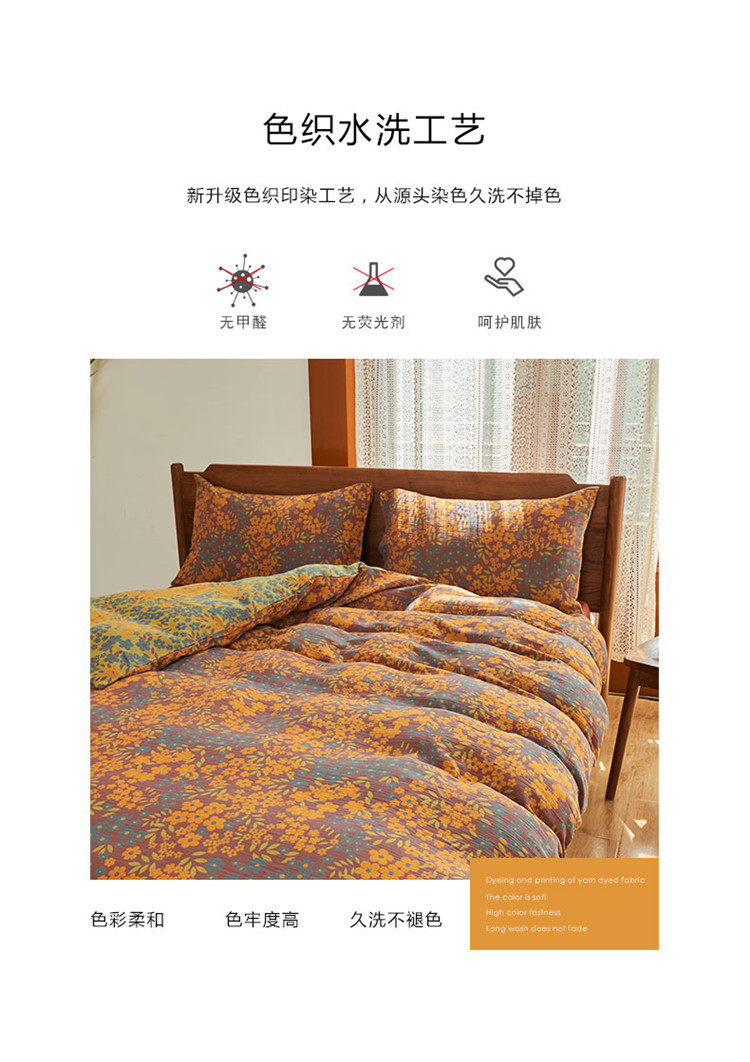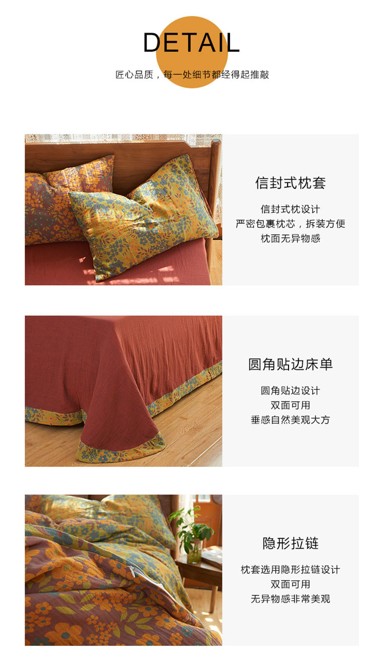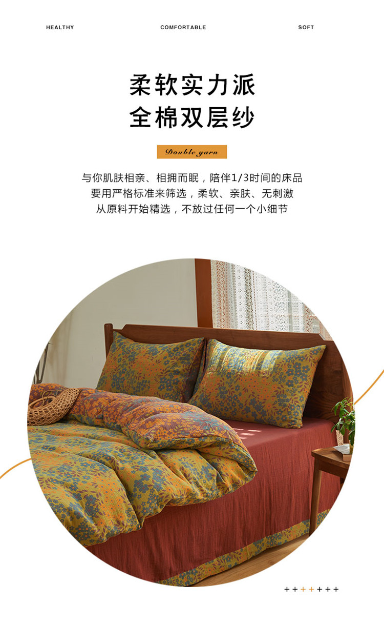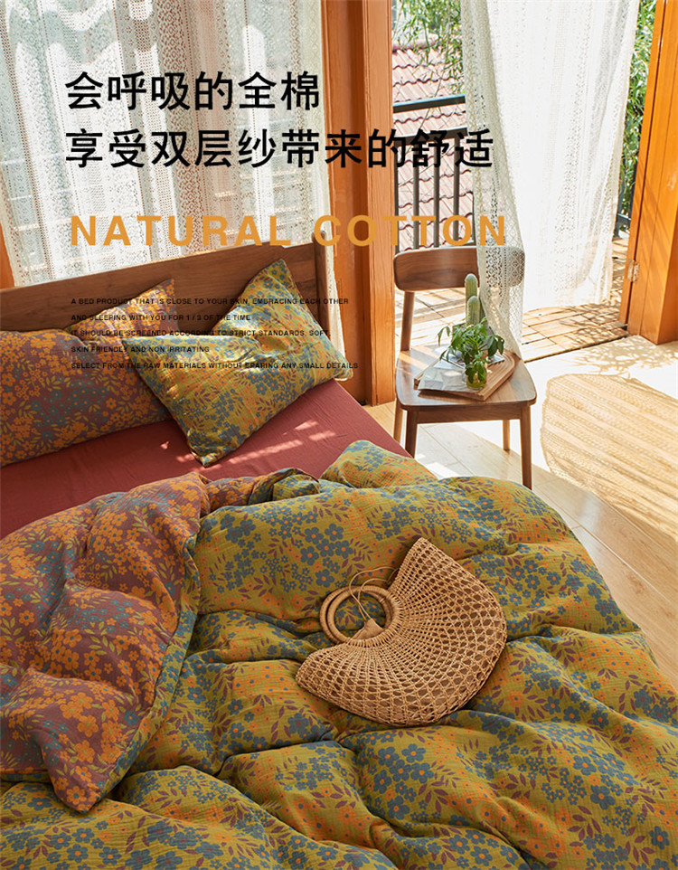 总安莱生活 2022新款色织提花全棉双层纱四件套-花团锦簇