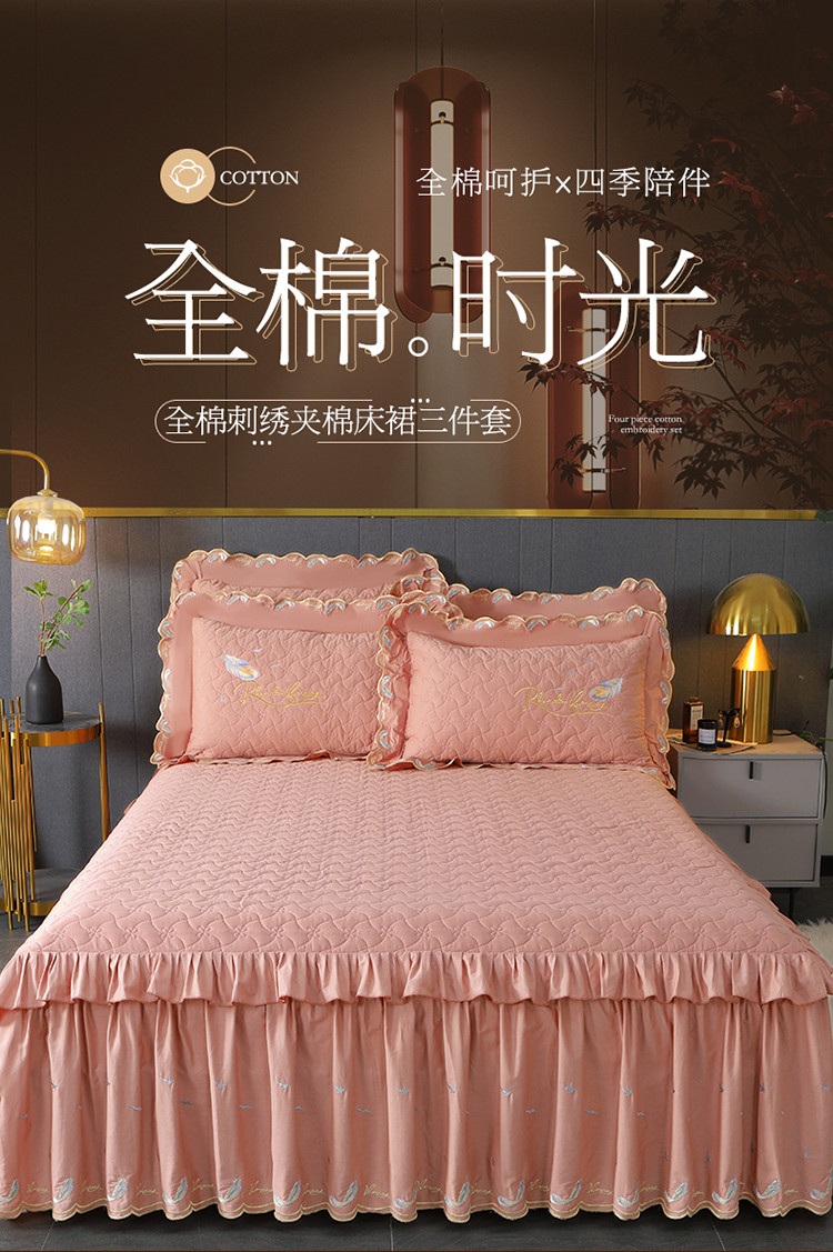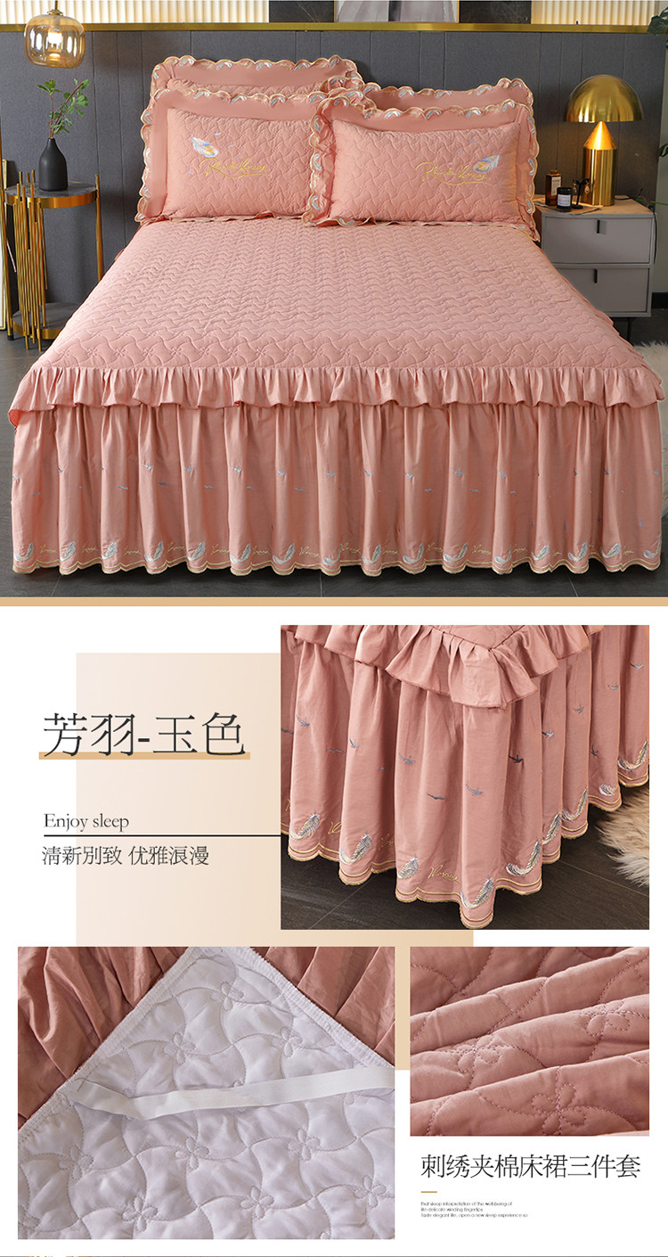 当前位置: 91家纺网 > 商品网购 > 床品套件 > 三件套 > 宜凡 2022新款全棉刺绣夹棉床裙款三件套-芳羽 芳羽玉色