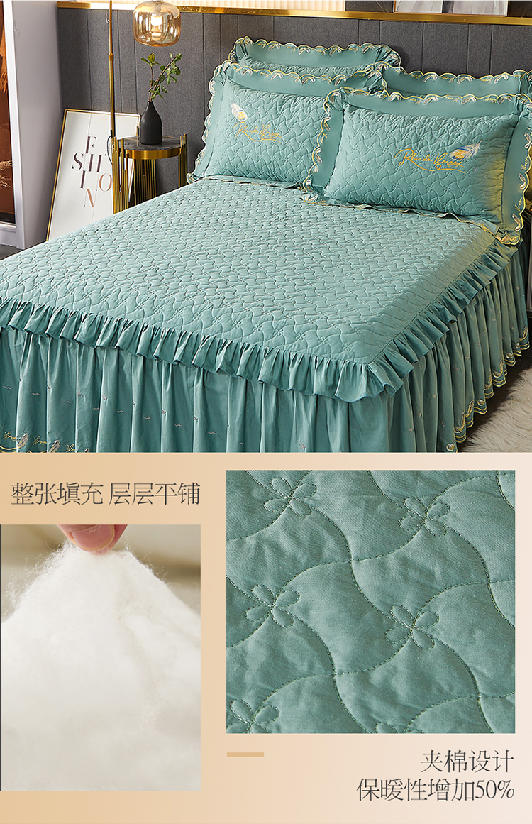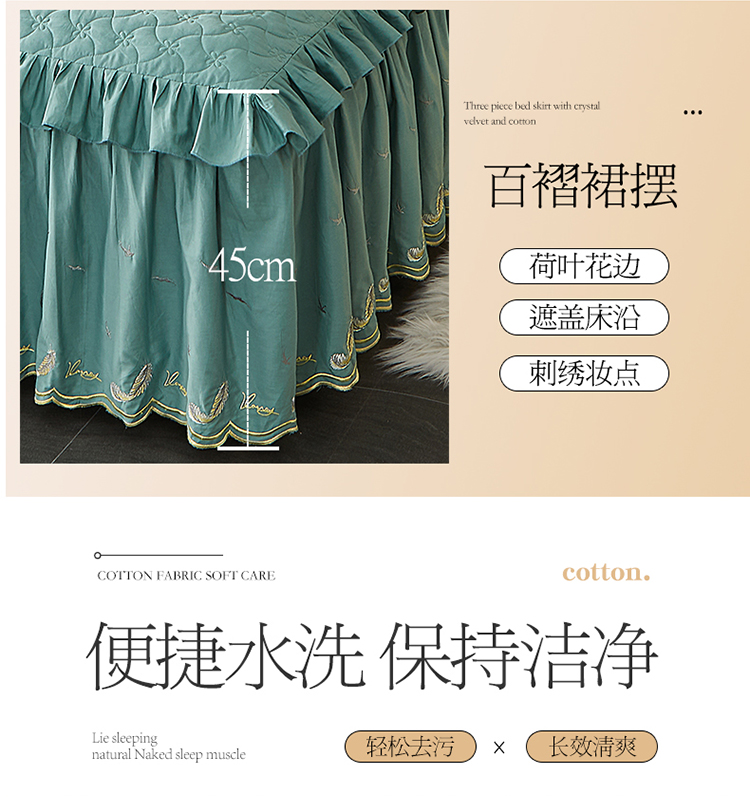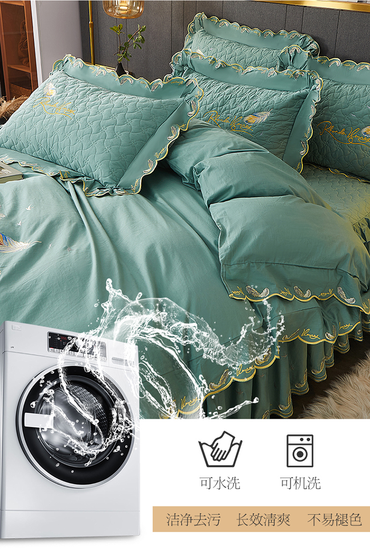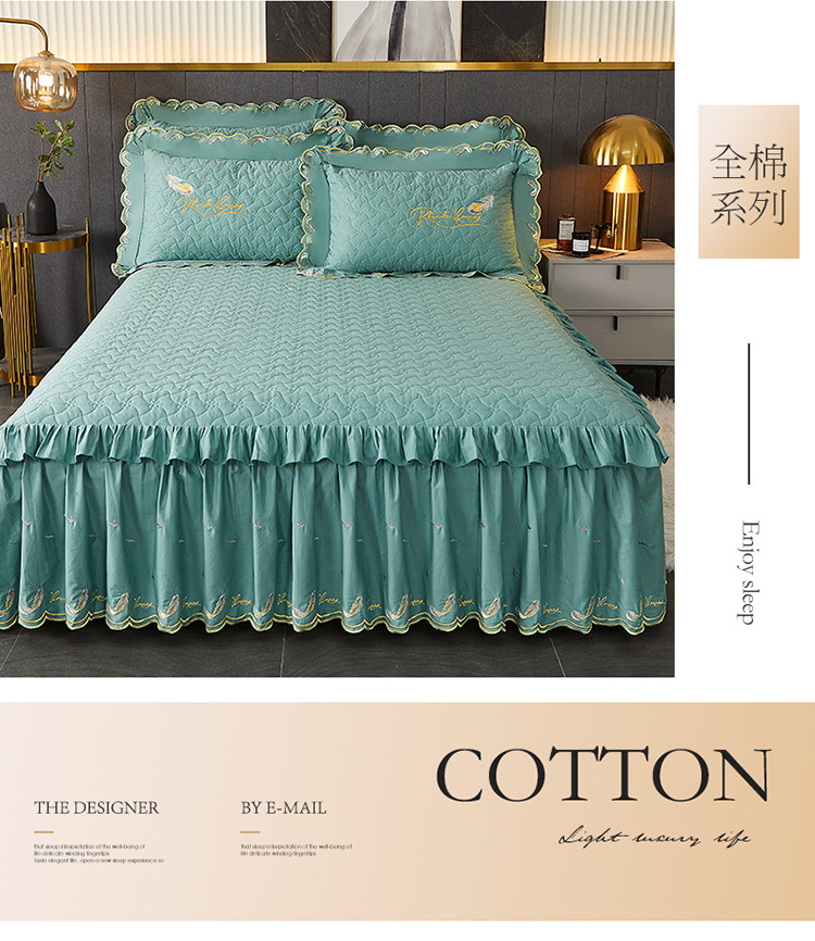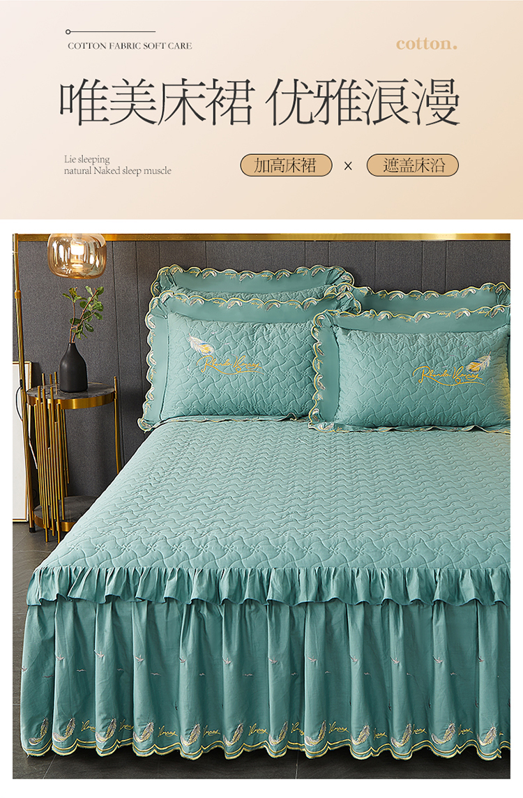 当前位置: 91家纺网 > 商品网购 > 床品套件 > 四件套 > 全棉普通四件套 > 宜凡 2022新款全棉刺绣夹棉床裙款四件套-芳羽 芳羽豆绿