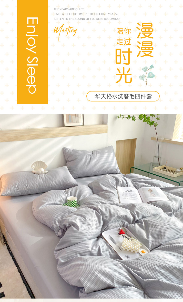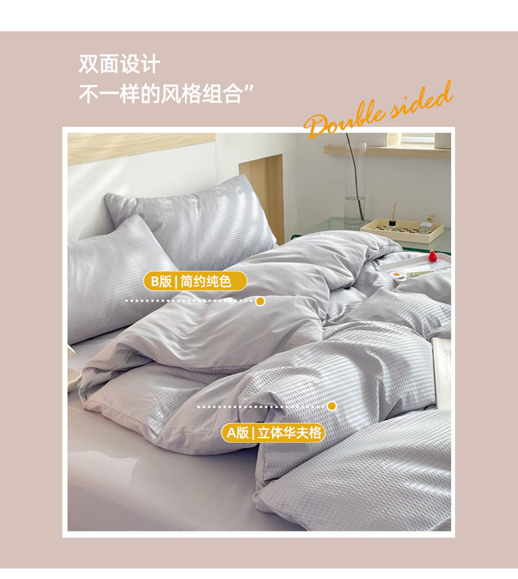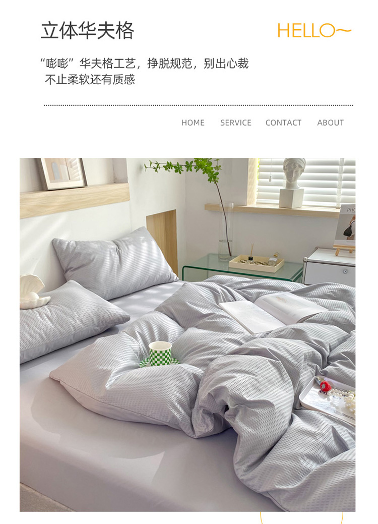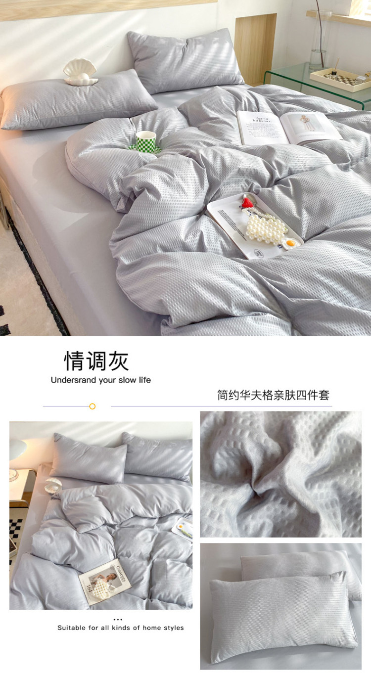 商品名称:慕澄家纺 2022新款华夫格简约款泡泡四件套 情调灰