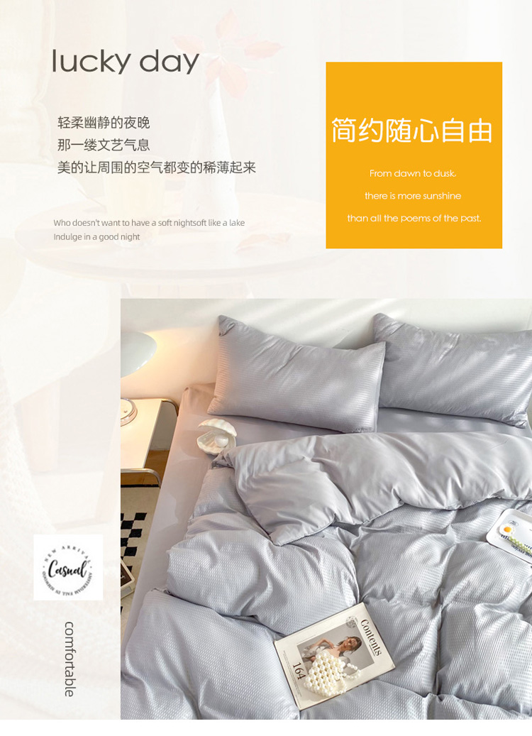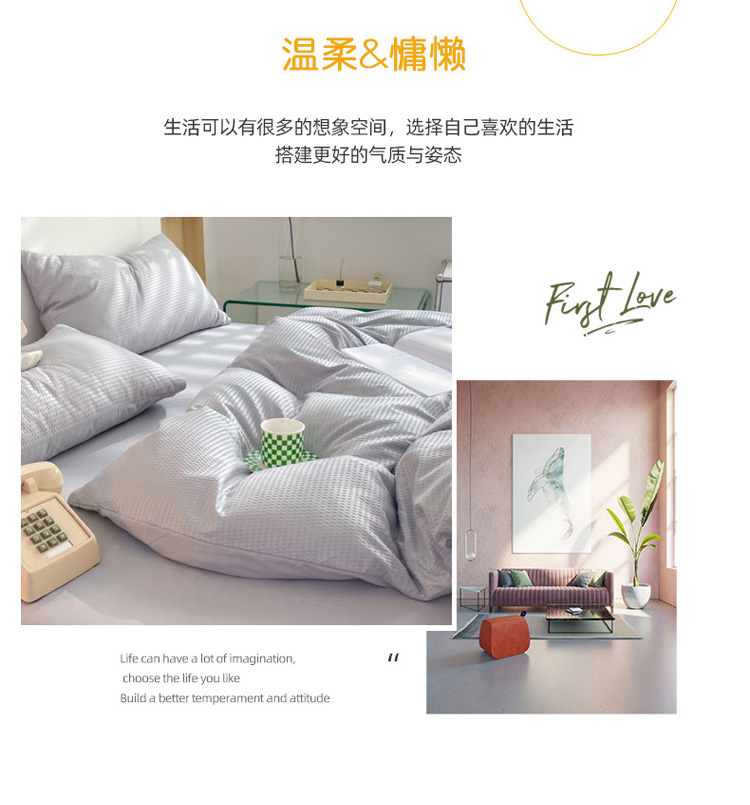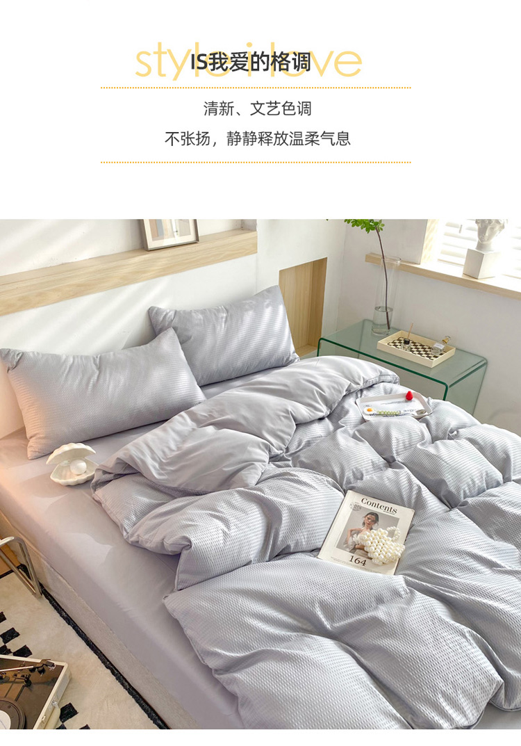 慕澄家纺 2022新款华夫格简约款泡泡四件套 情调灰