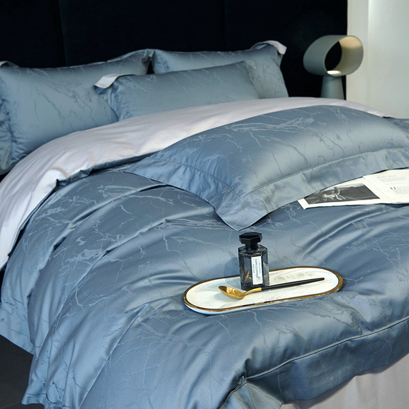 商品名称:时亿 2022新款100支长绒棉提花四件套 梵高-琉璃蓝