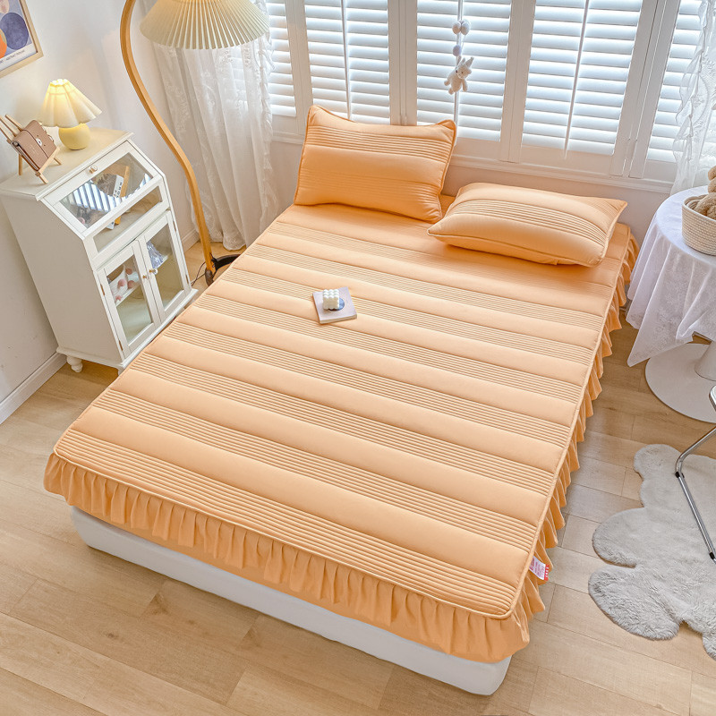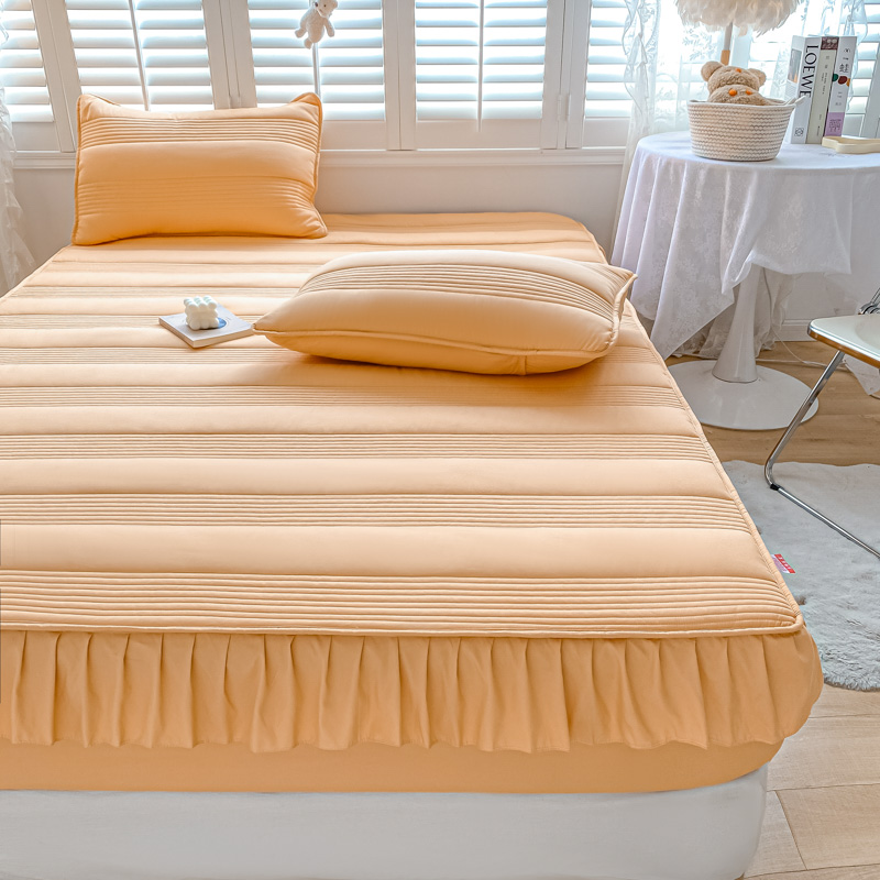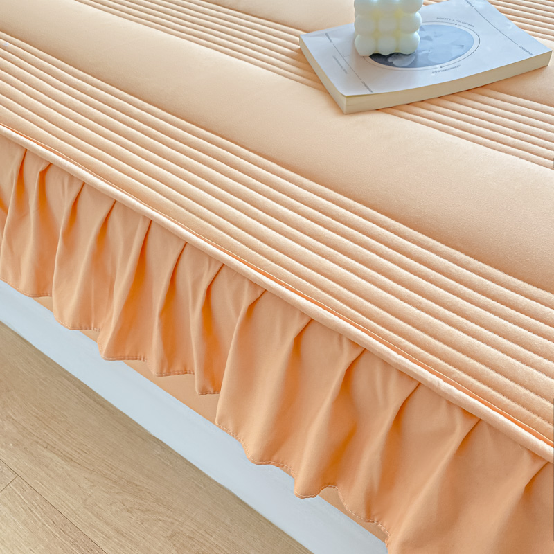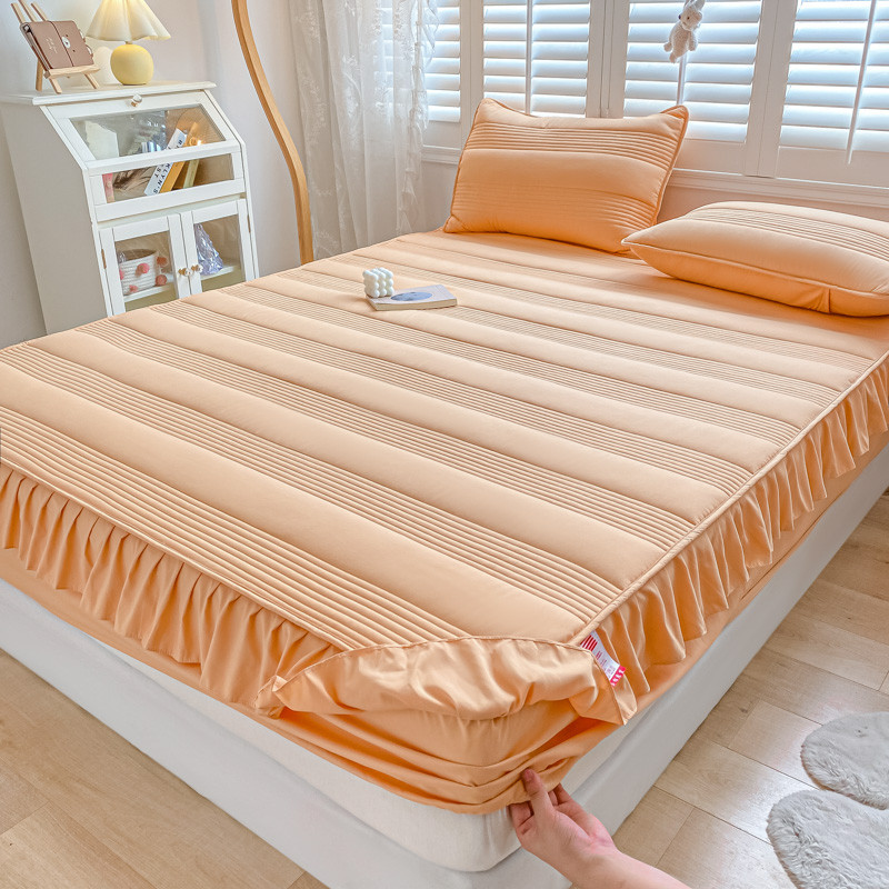 鑫钰 2023新款蝴蝶结亲肤夹棉床裙款床笠 罗曼-橙