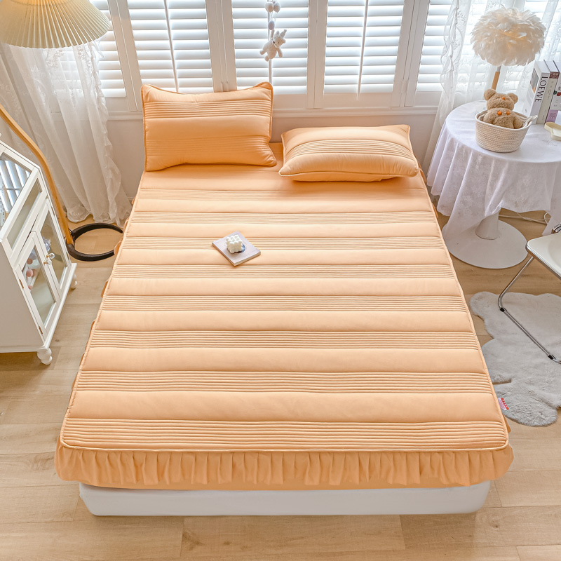• 91家纺网 家纺一手货源 找家纺 鑫钰 2023新款蝴蝶结亲肤夹棉床裙款床笠 罗曼-橙