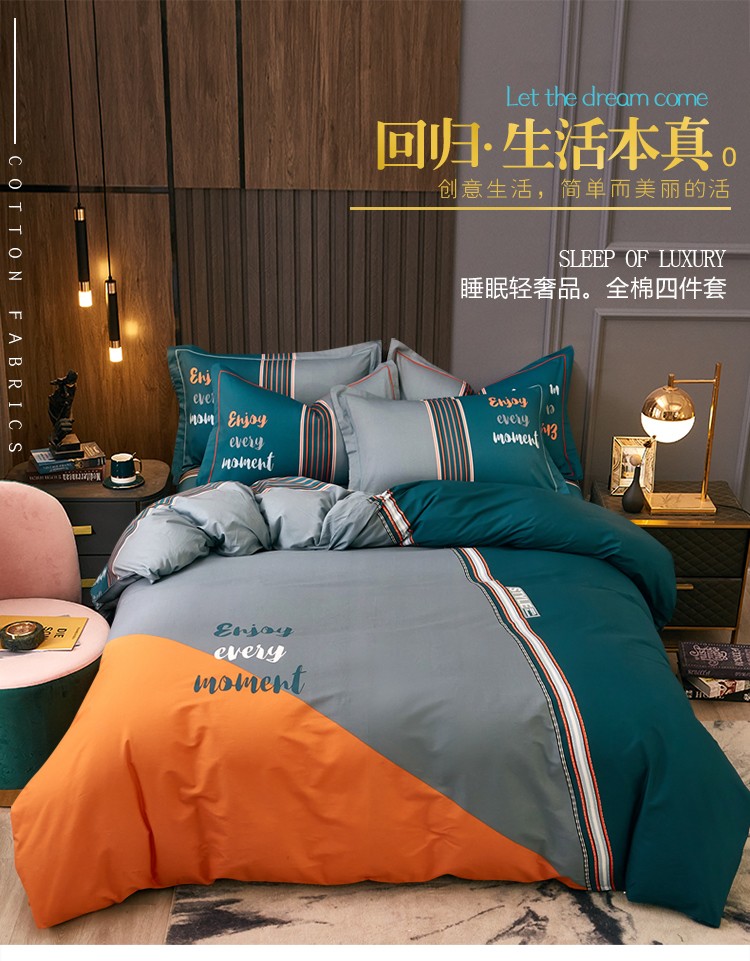 (总)雲归梦 2021新款全棉生态磨毛刺绣四件套,慕思-橙色,慕思-粉紫,慕思-灰,慕思-米黄,慕思-青绿,慕思-天蓝