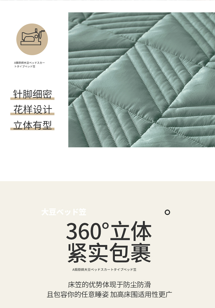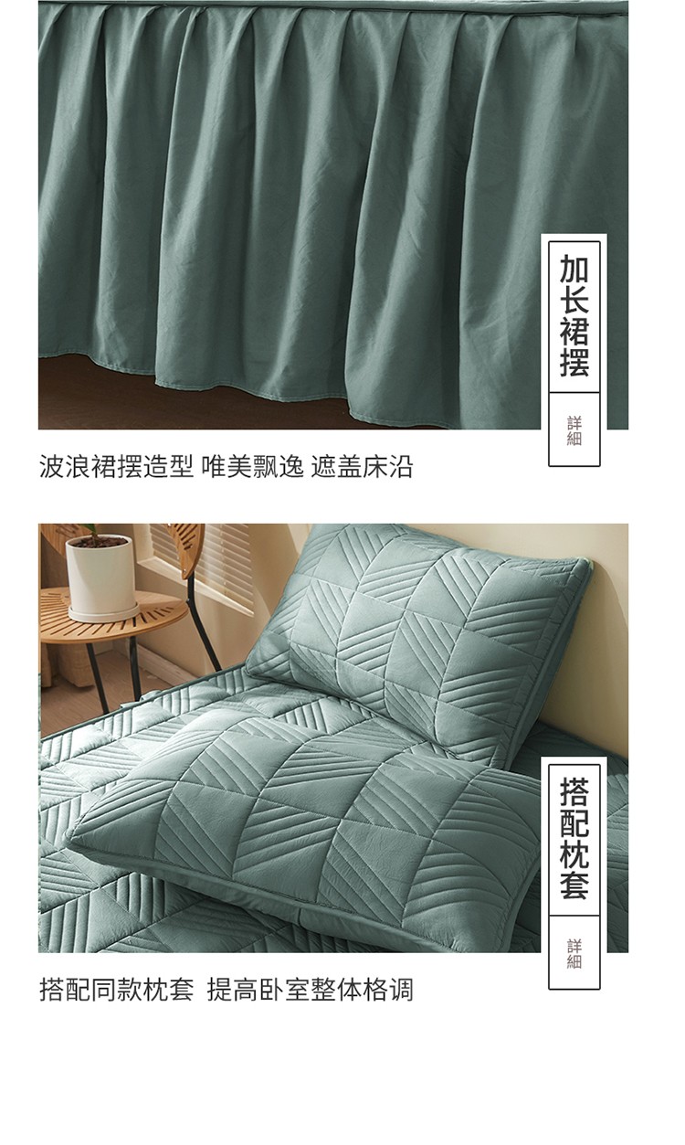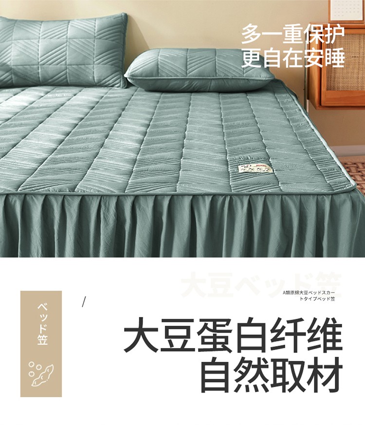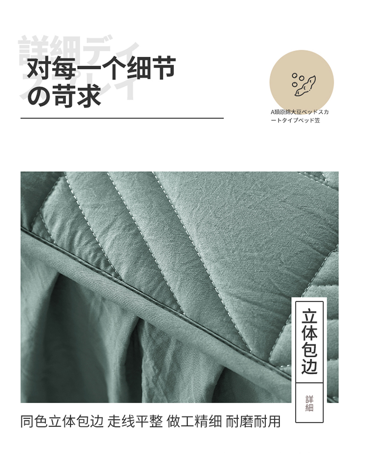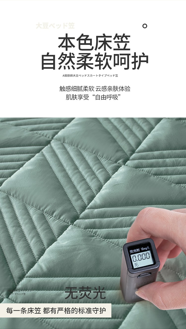 2022新款A类原棉大豆夹棉床裙款床笠本色大豆床笠错落格墨绿