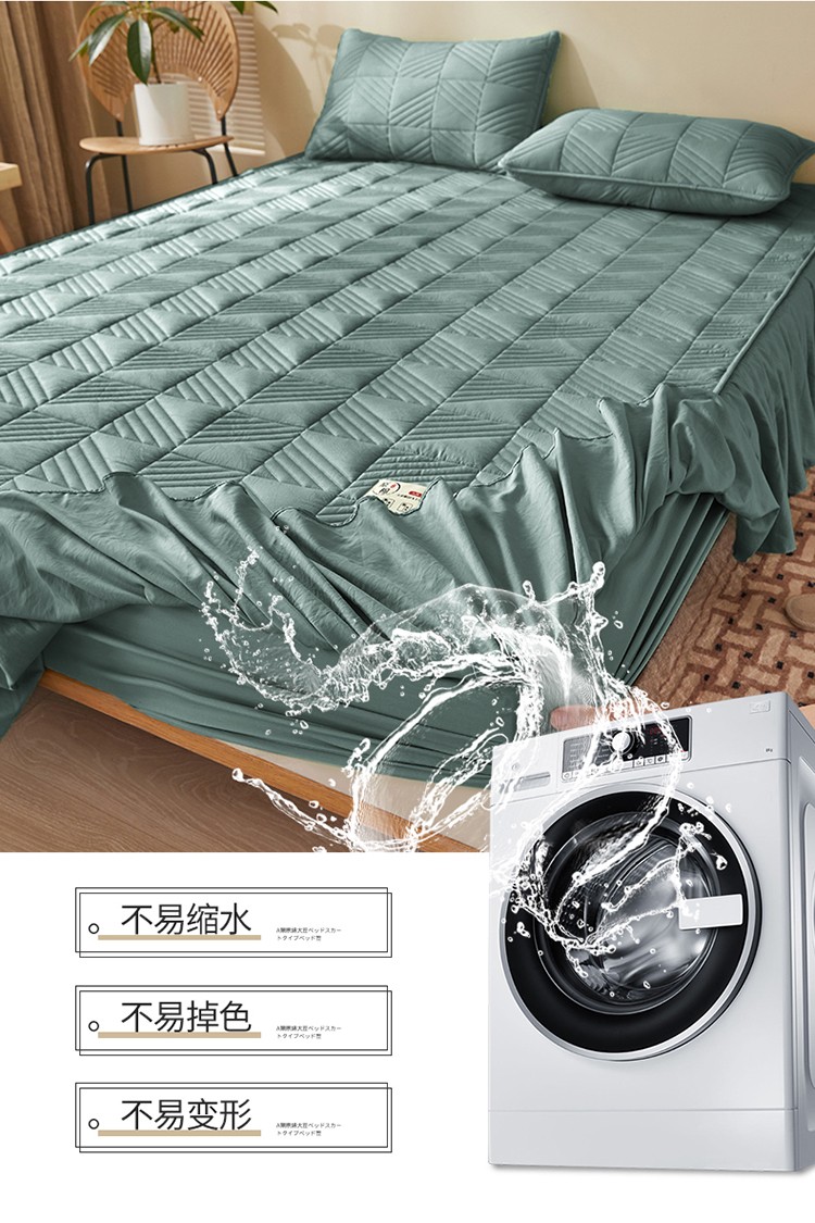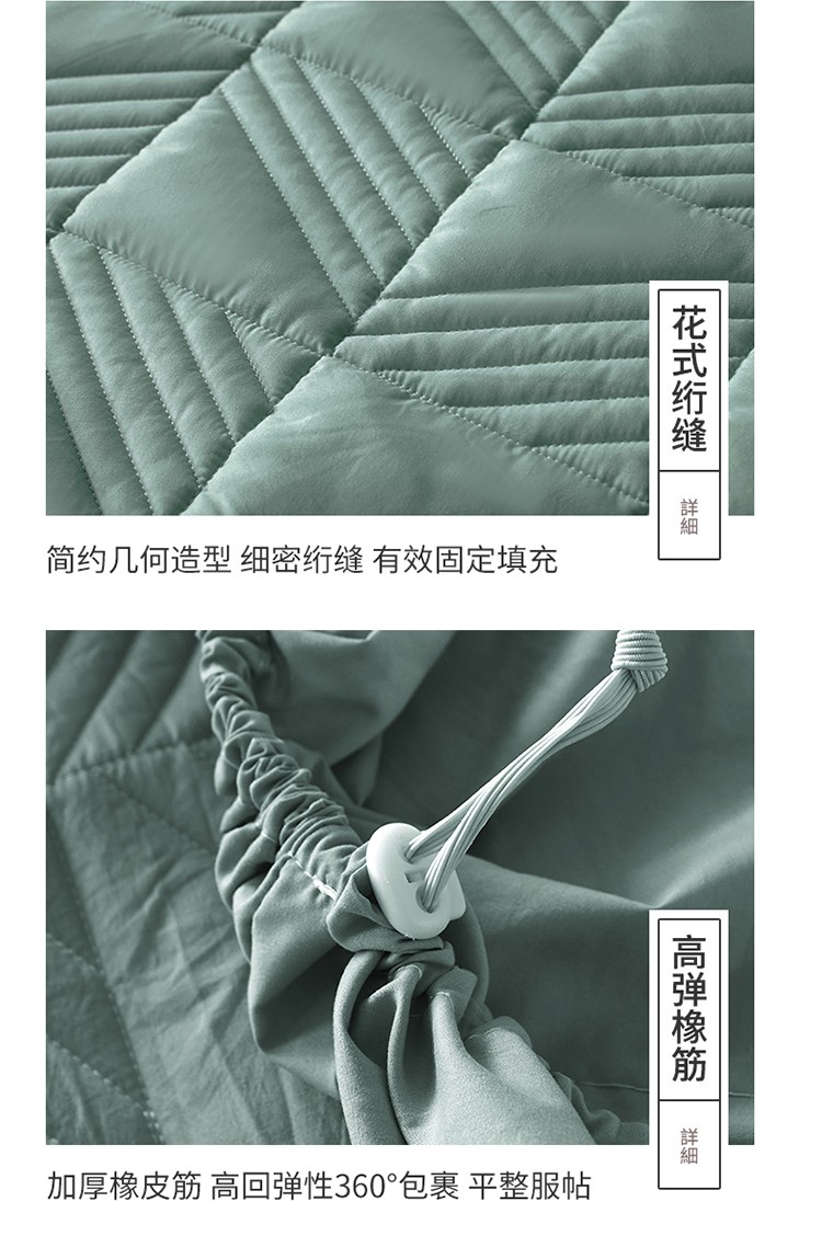 • 91家纺网 家纺一手货源 找家纺 2022新款A类原棉大豆夹棉床裙款床笠本色大豆床笠错落格墨绿