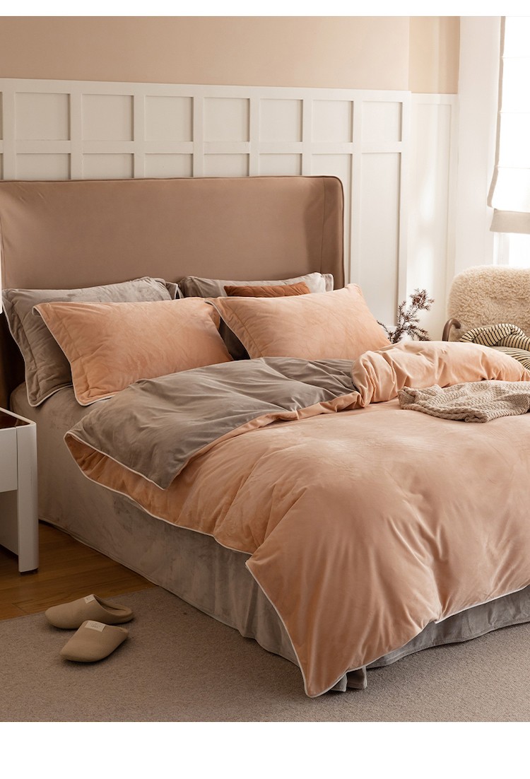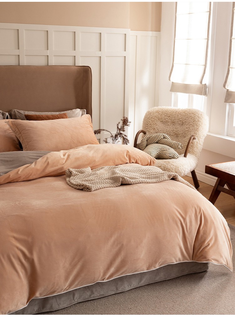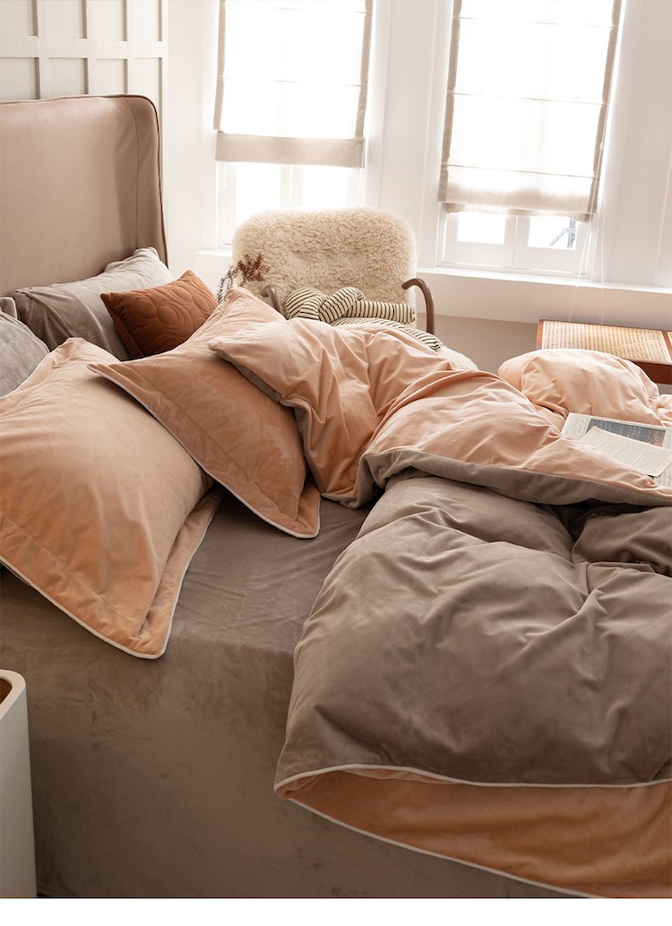 当前位置: 91家纺网 > 商品网购 > 床品套件 > 四件套 > 磨绒四件套 > 万盛家纺 2025新款德芙绒牛奶绒法莱双拼四件套 奶油橘-米灰