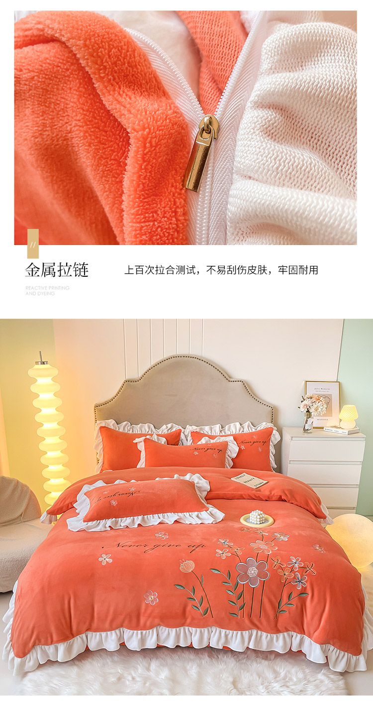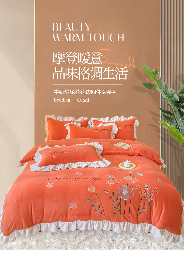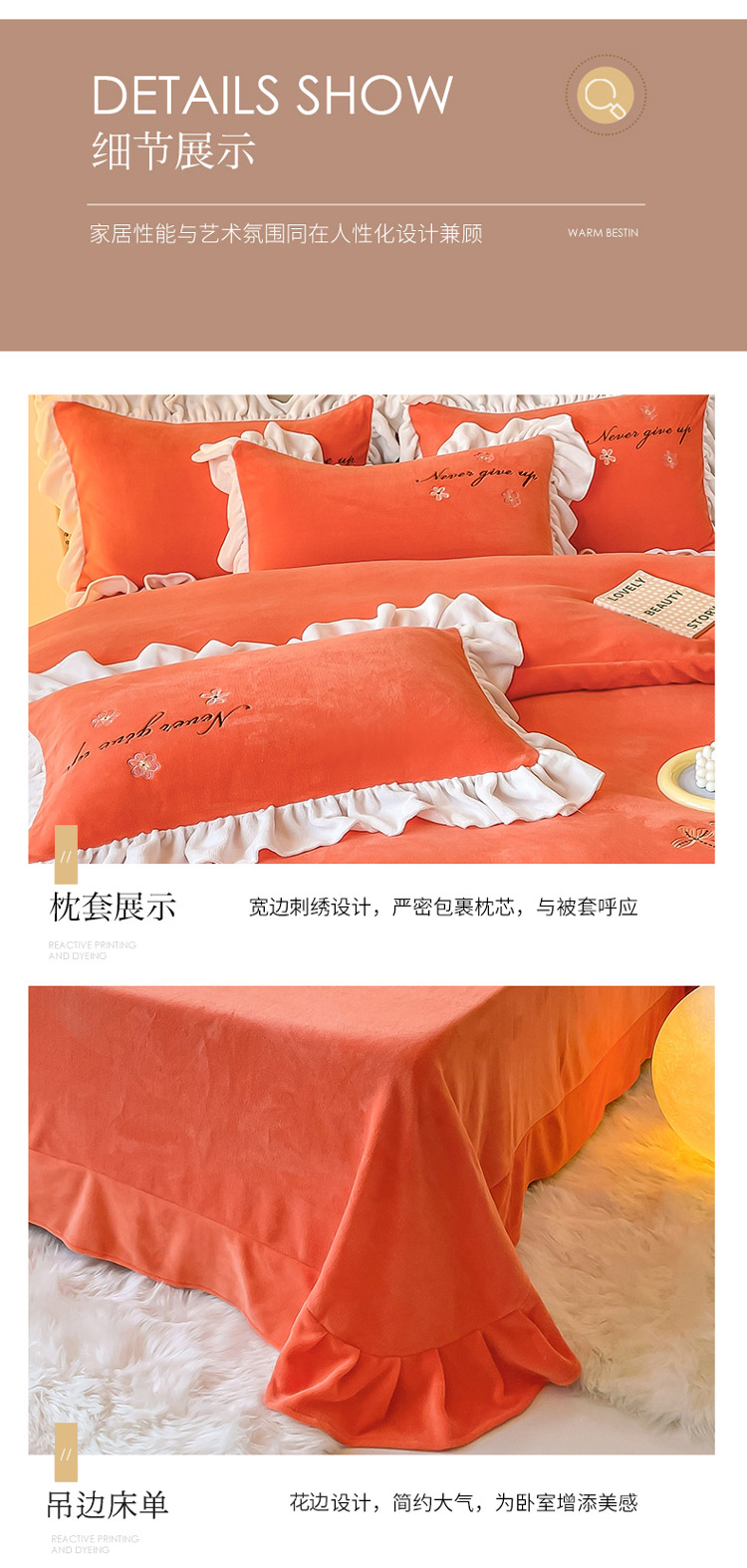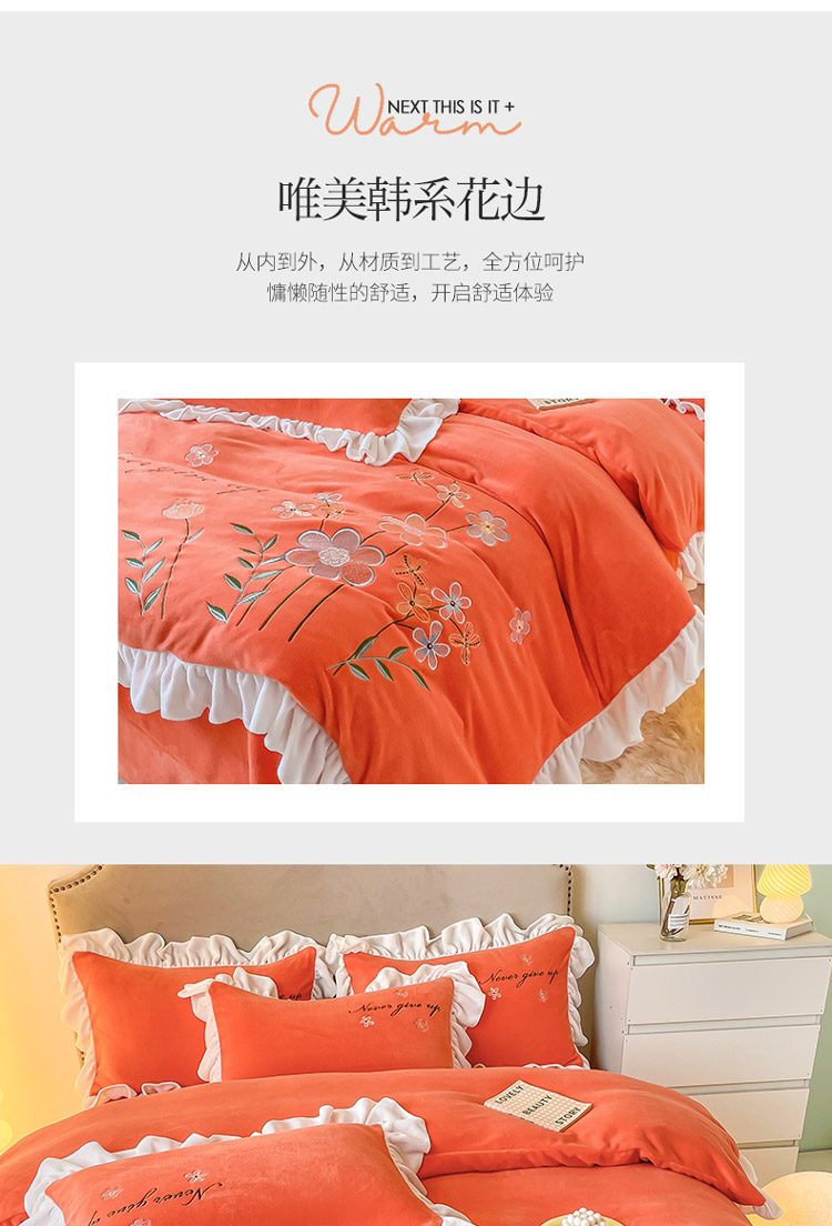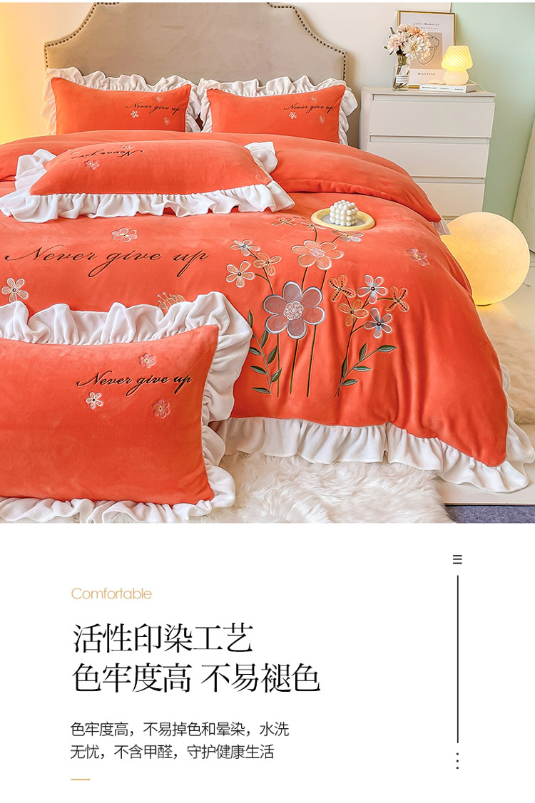凯美2022新款牛奶绒四件套花镜系列 橘色