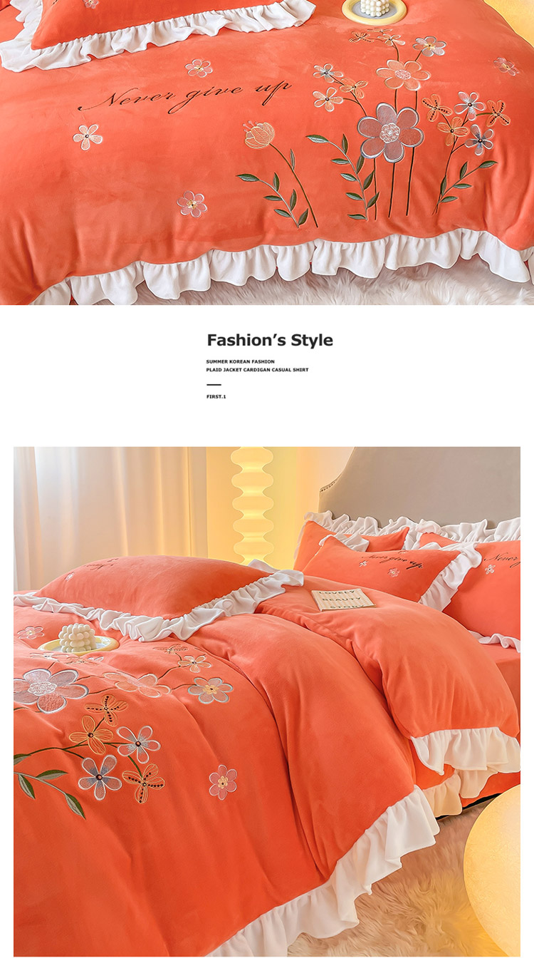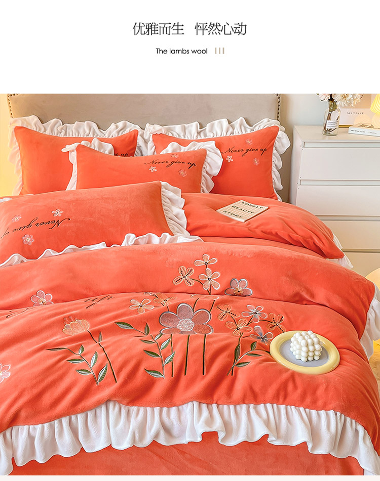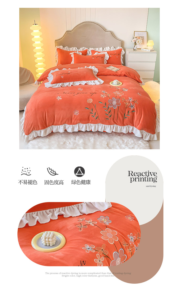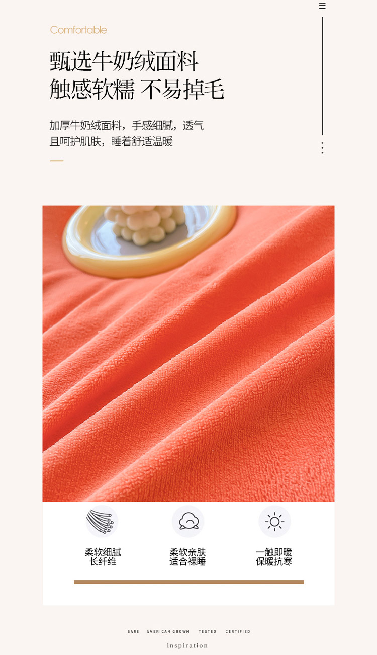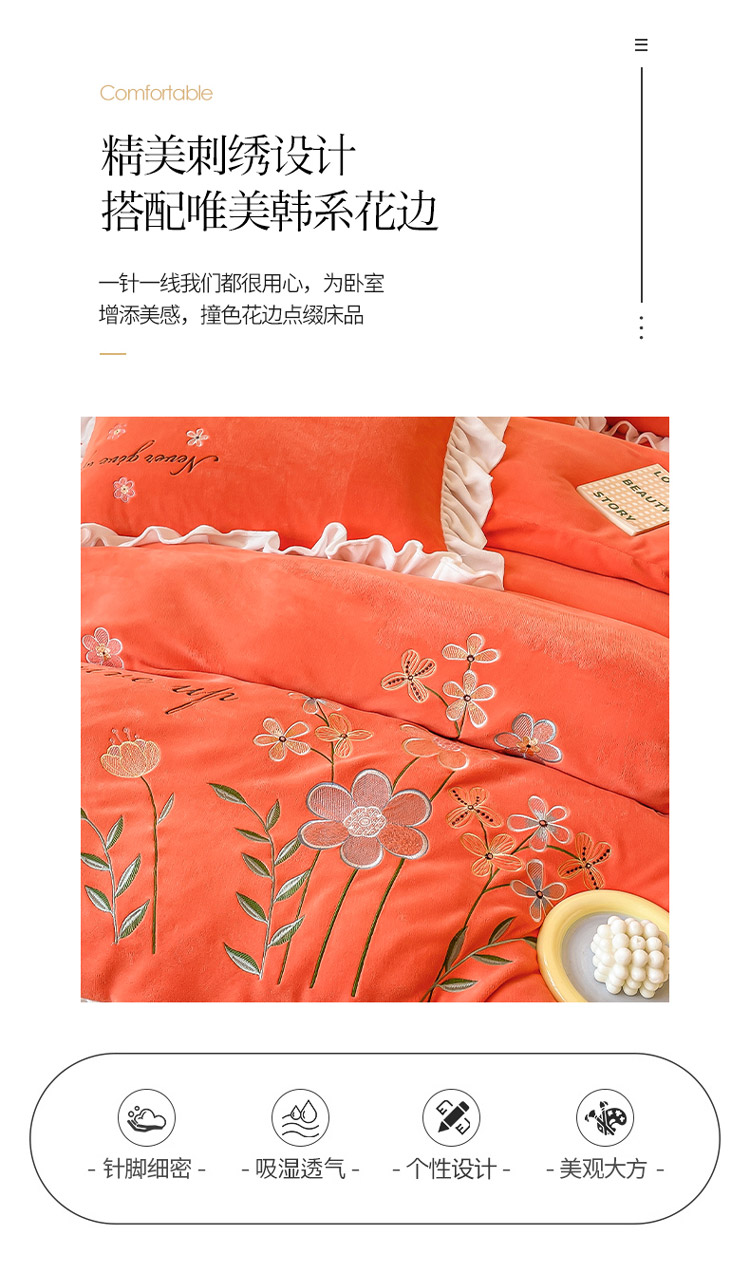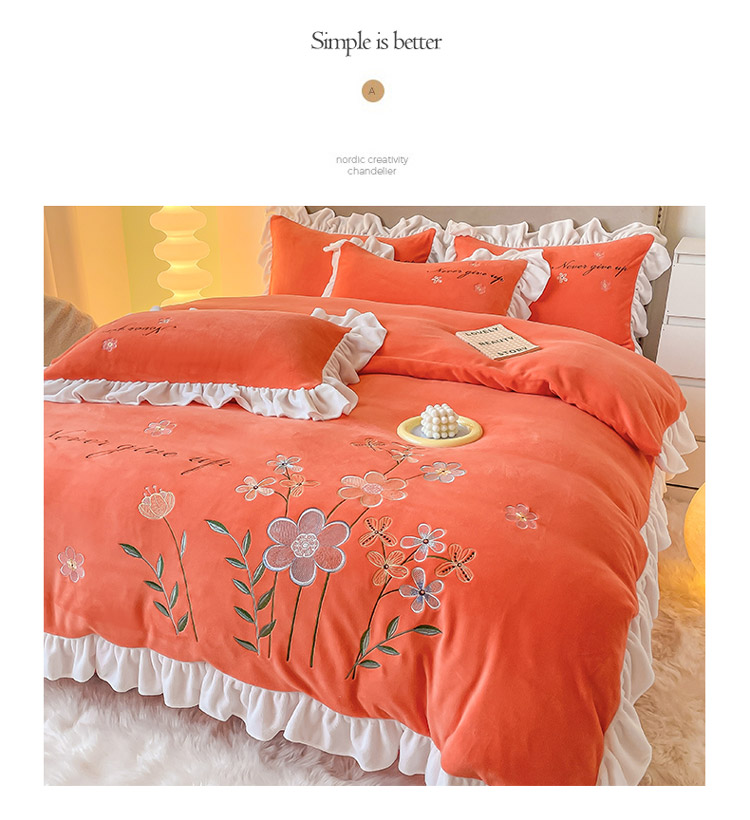 凯美2022新款牛奶绒四件套花镜系列 橘色