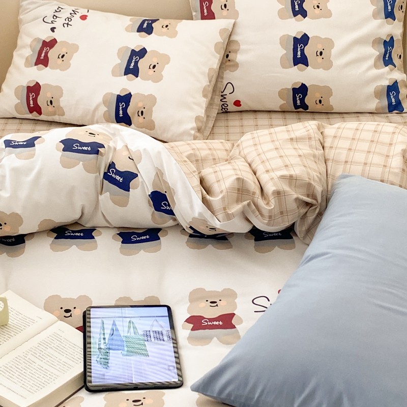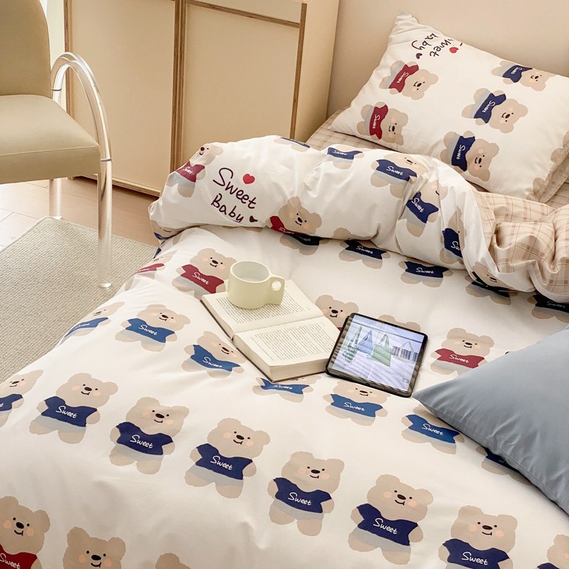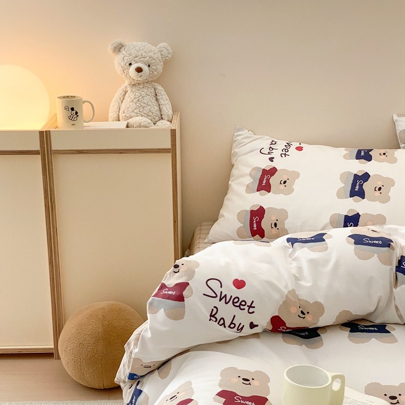 昔可2022新款全棉四件套新款影棚图 公仔熊