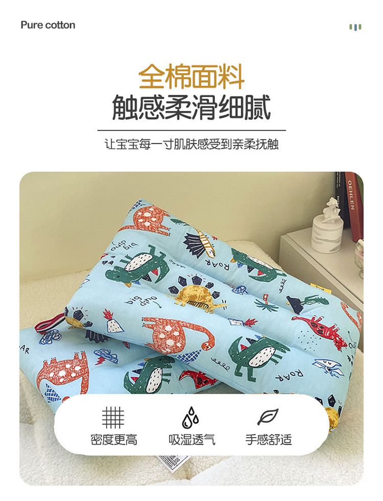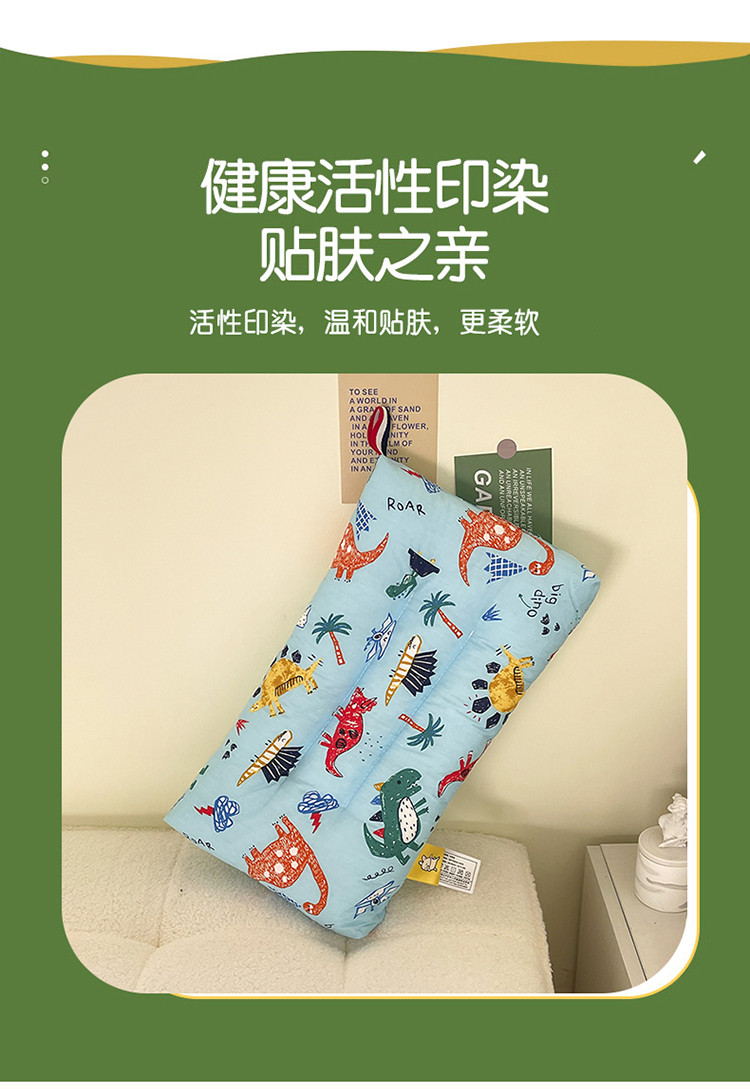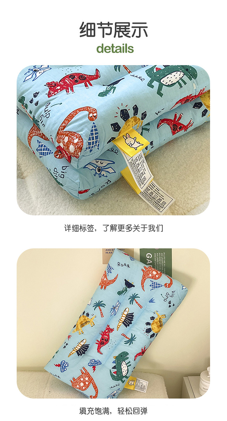 商品名称:宝晶枕芯 2022新款全棉儿童枕头可水洗儿童枕 蓝色恐龙