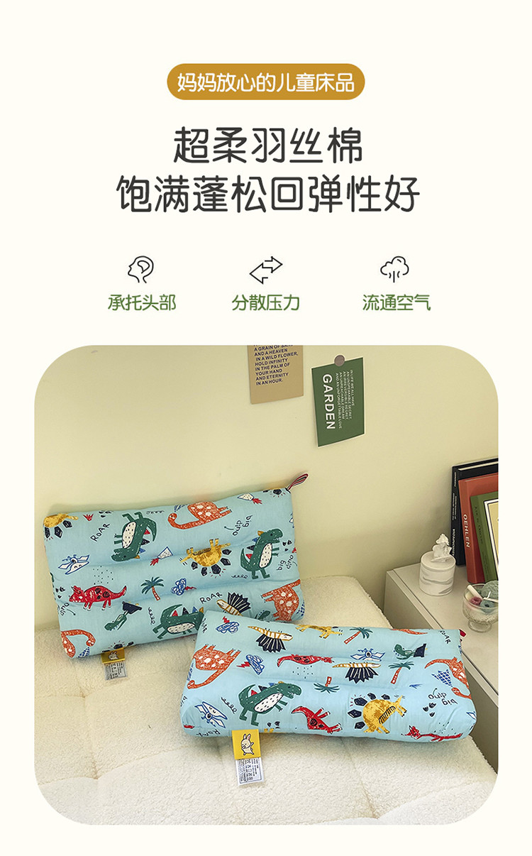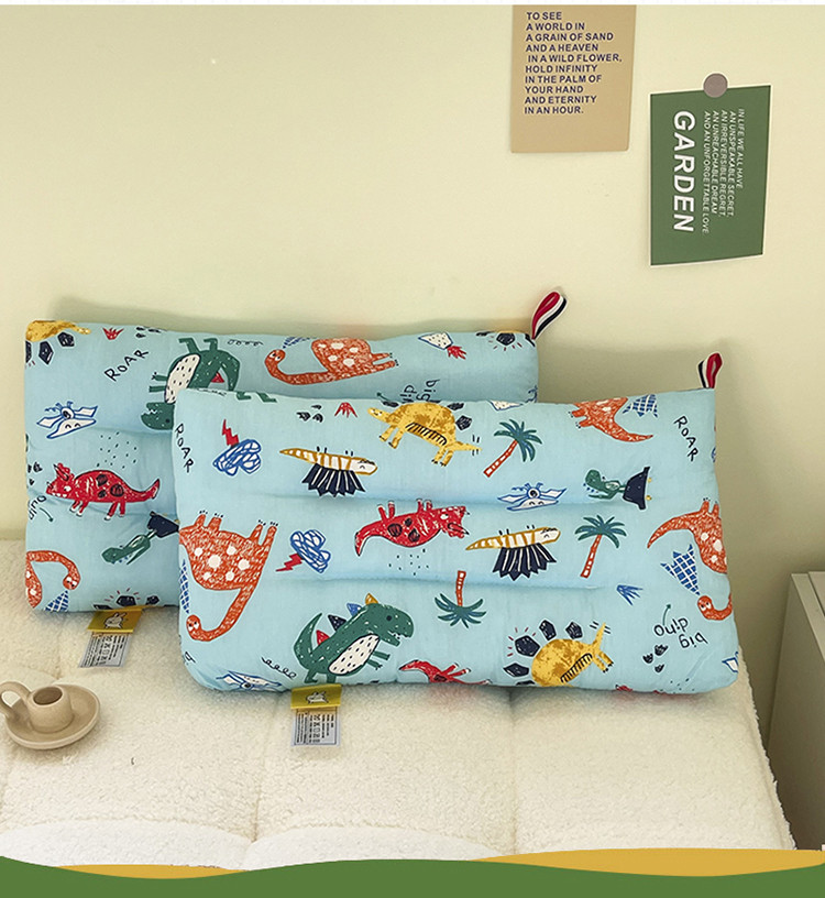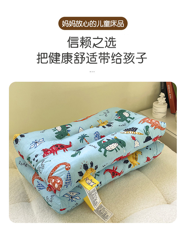 宝晶枕芯 2022新款全棉儿童枕头可水洗儿童枕 蓝色恐龙