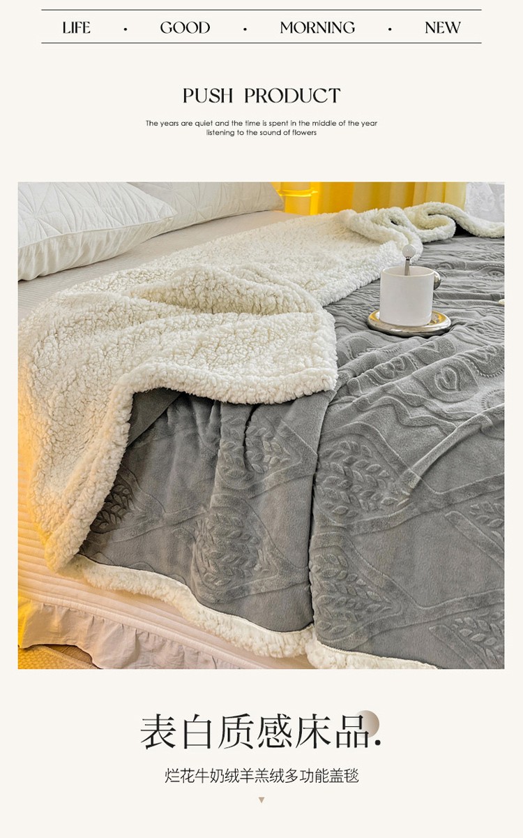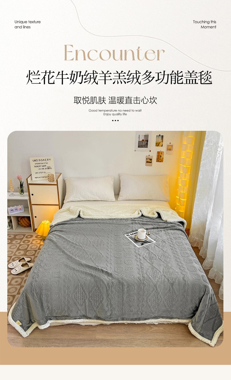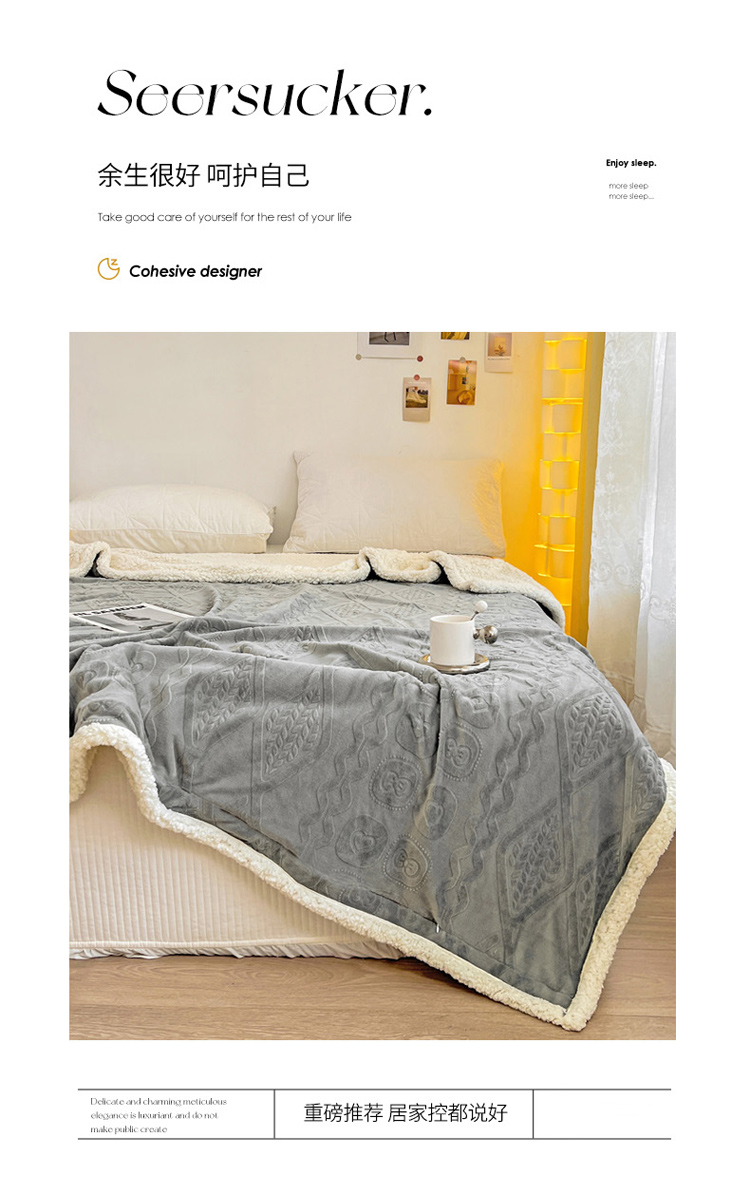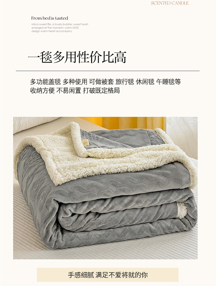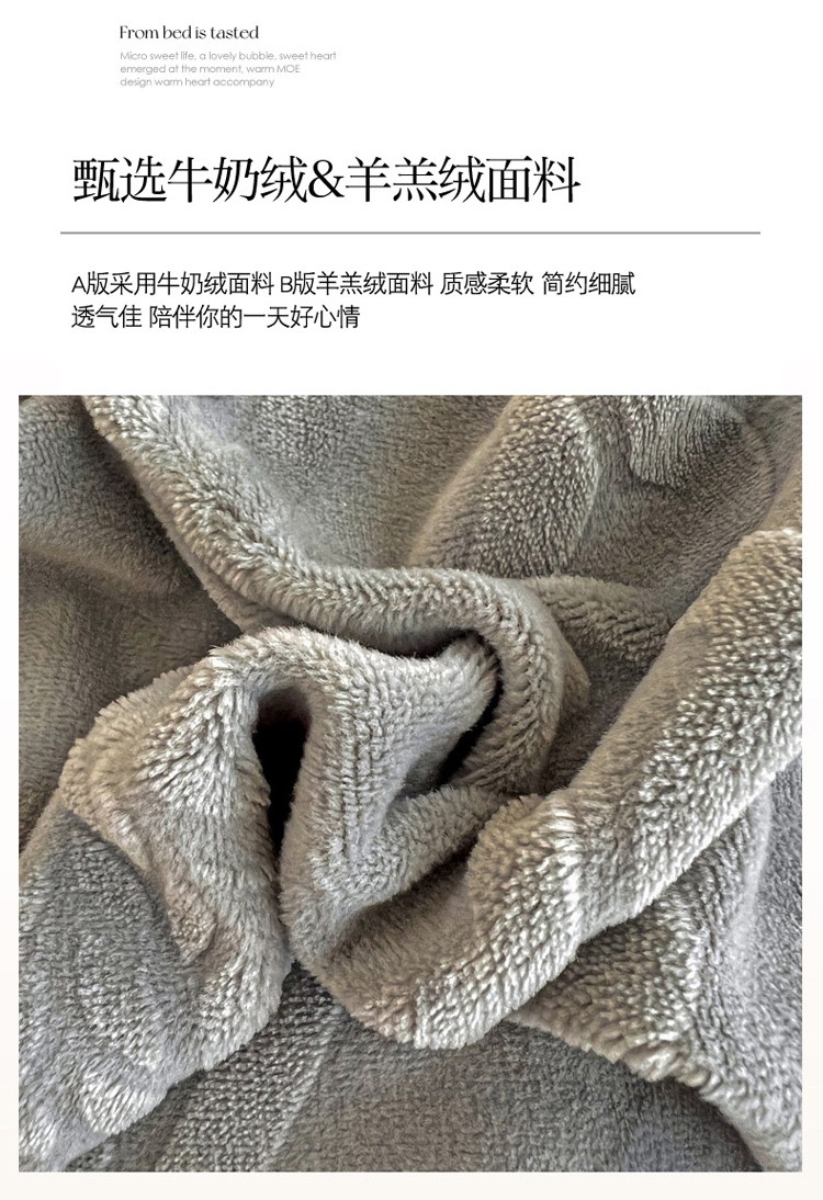 寐居 2022新款烂花牛奶绒羊羔绒多功能毛毯 简爱-浅灰