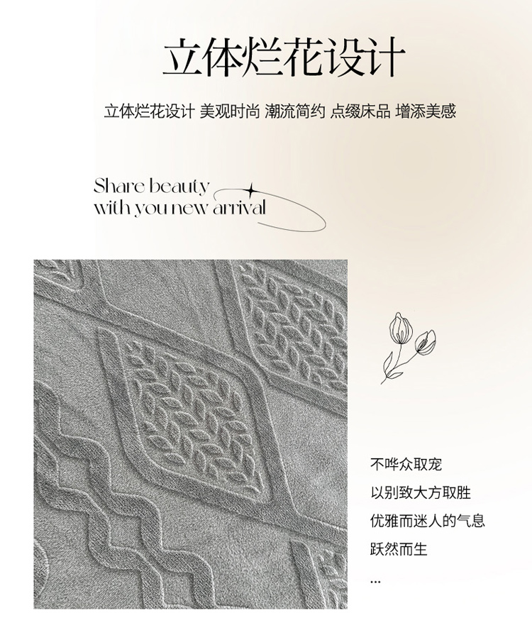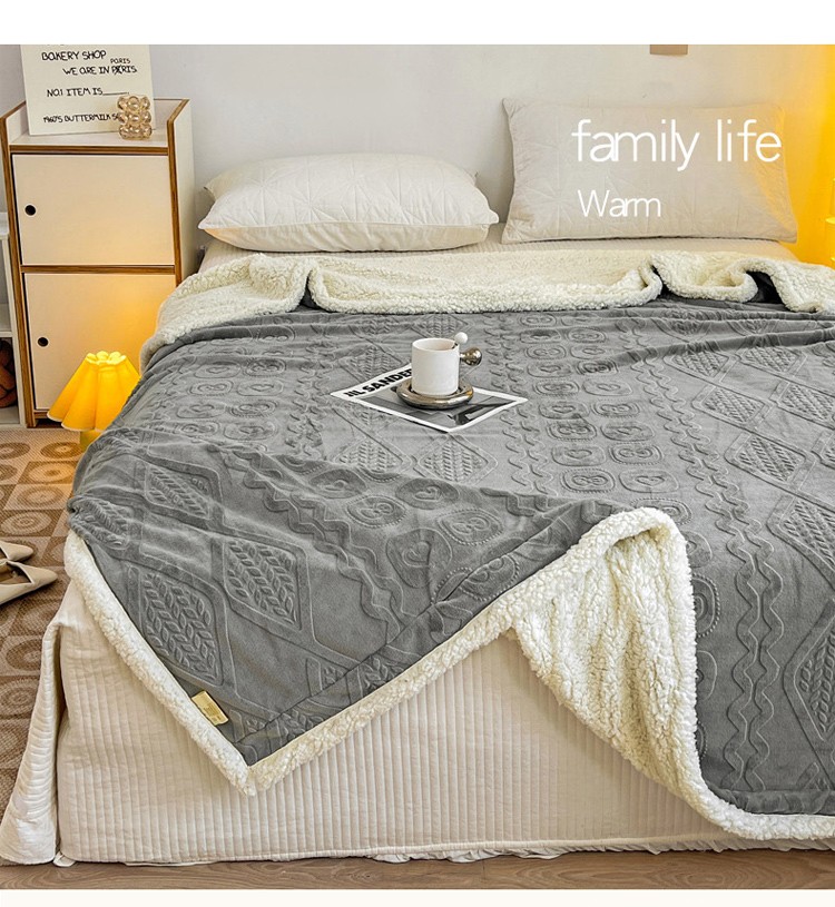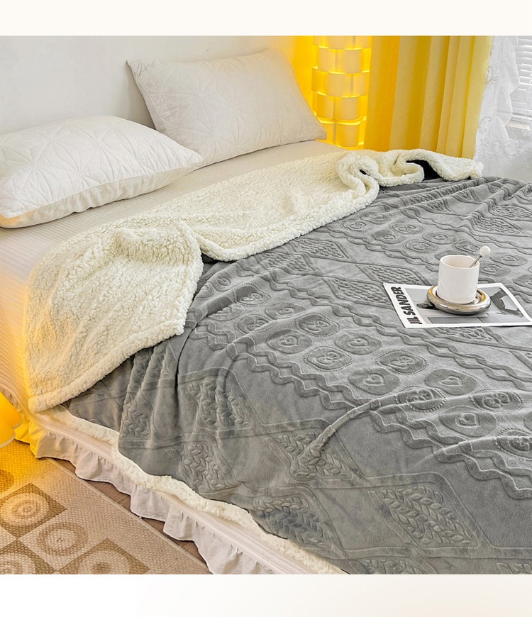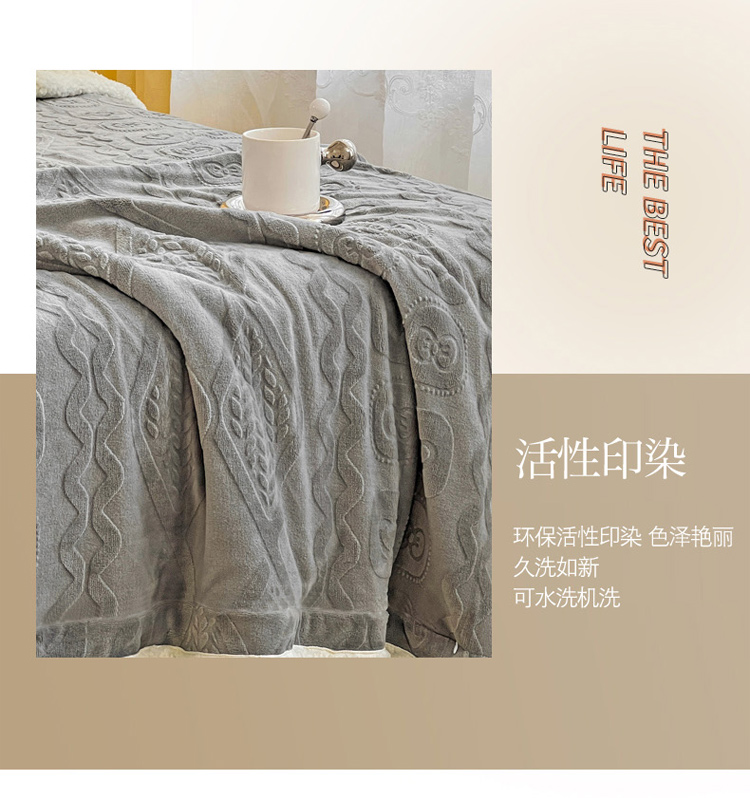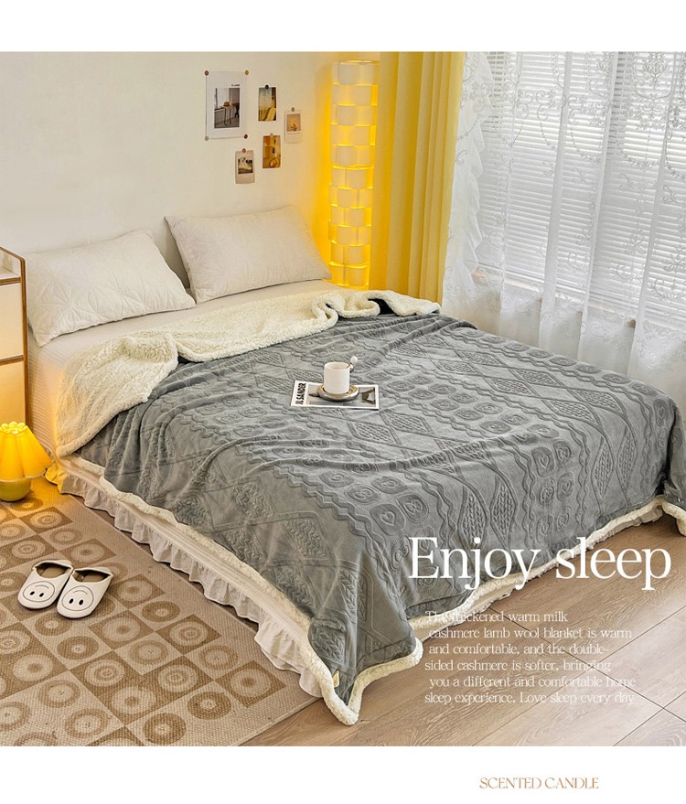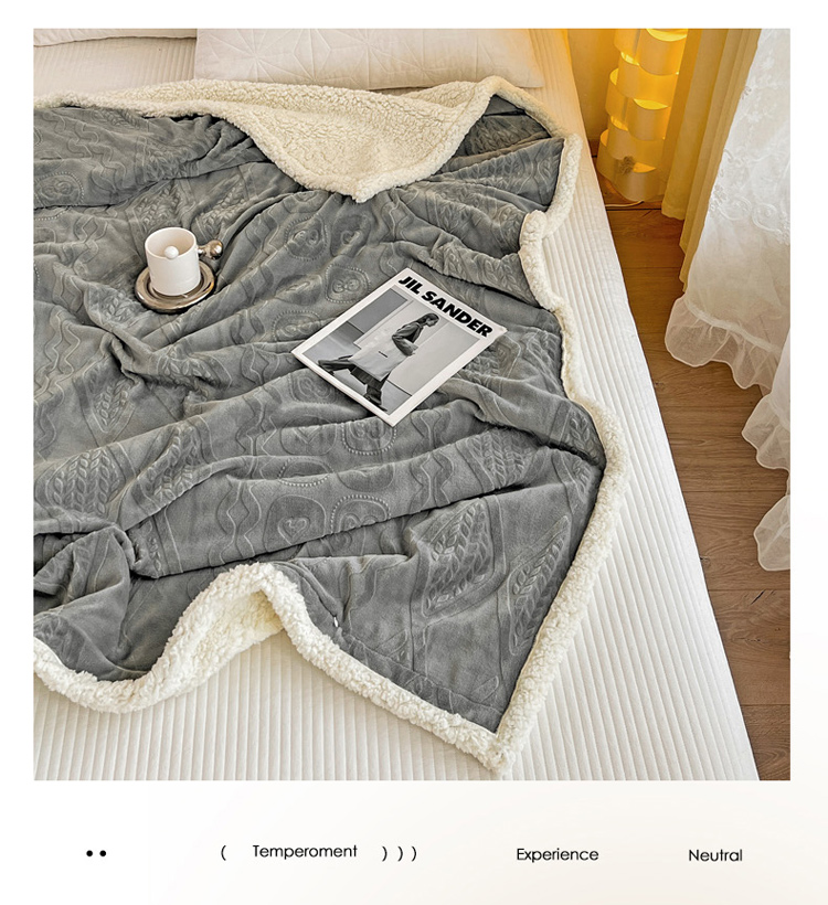 寐居 2022新款烂花牛奶绒羊羔绒多功能毛毯 简爱-浅灰