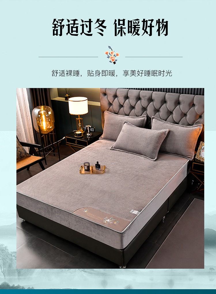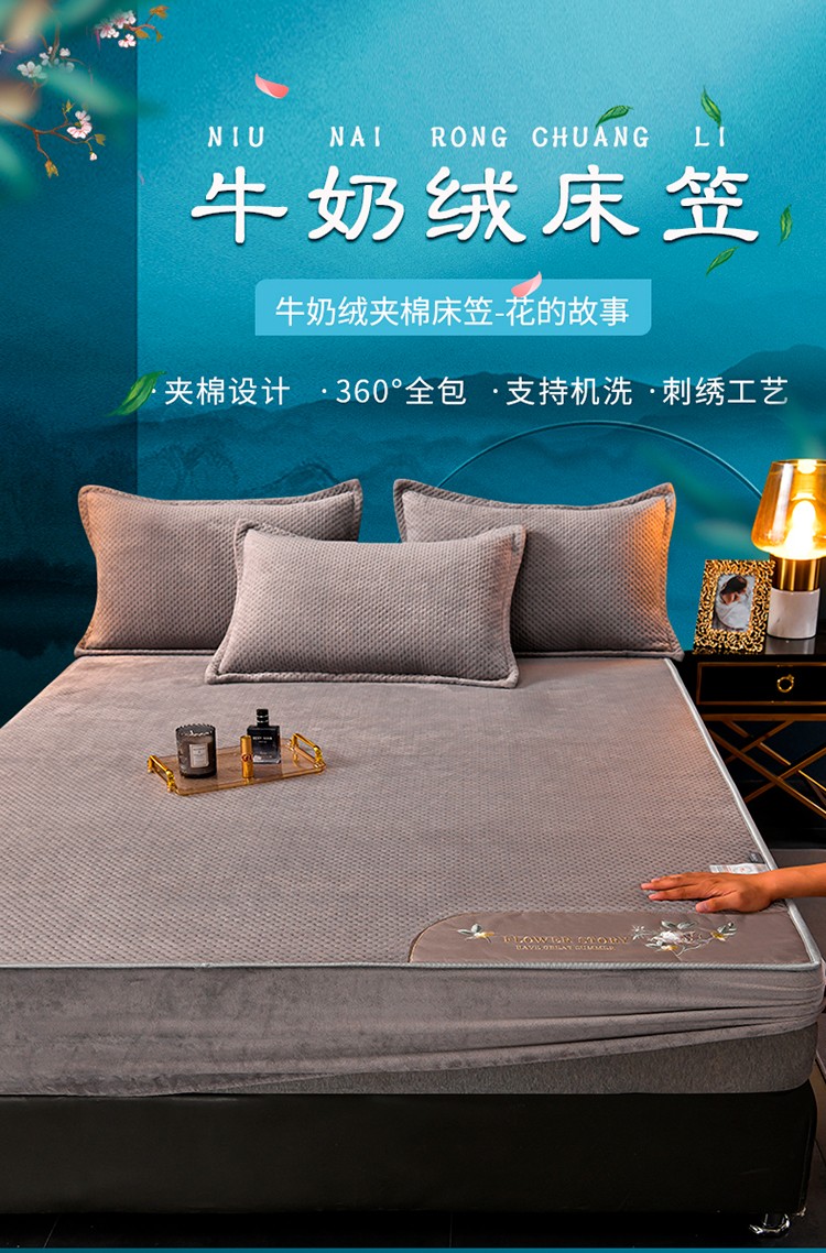 • 91家纺网 家纺一手货源 找家纺 小牛席业 2022新款牛奶绒夹棉床笠-花的故事 牛奶绒床笠-花的故事(浅灰)