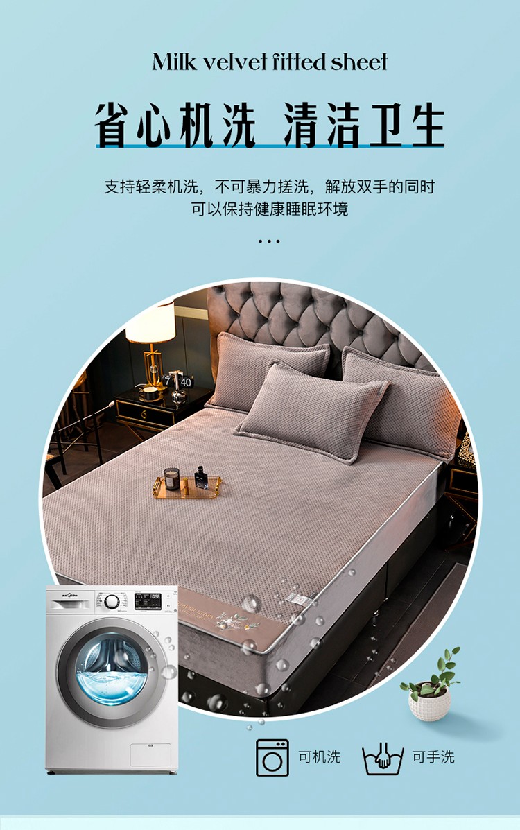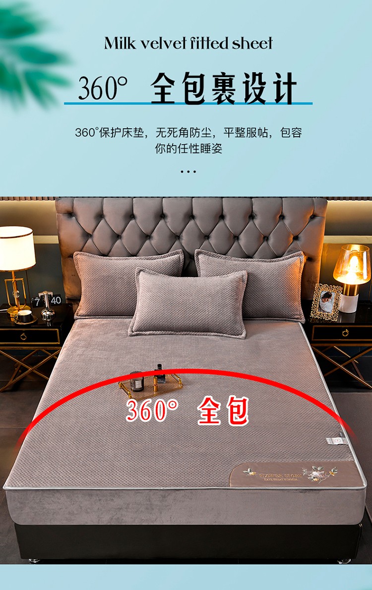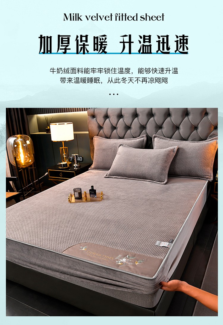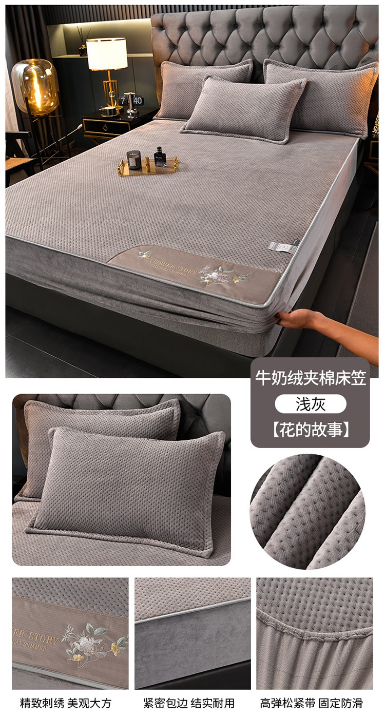 小牛席业 2022新款牛奶绒夹棉床笠-花的故事 牛奶绒床笠-花的故事(浅灰)