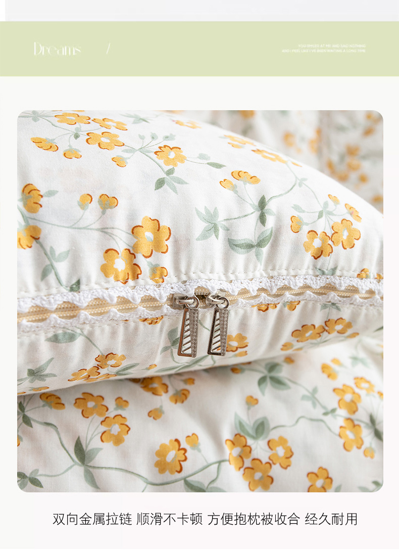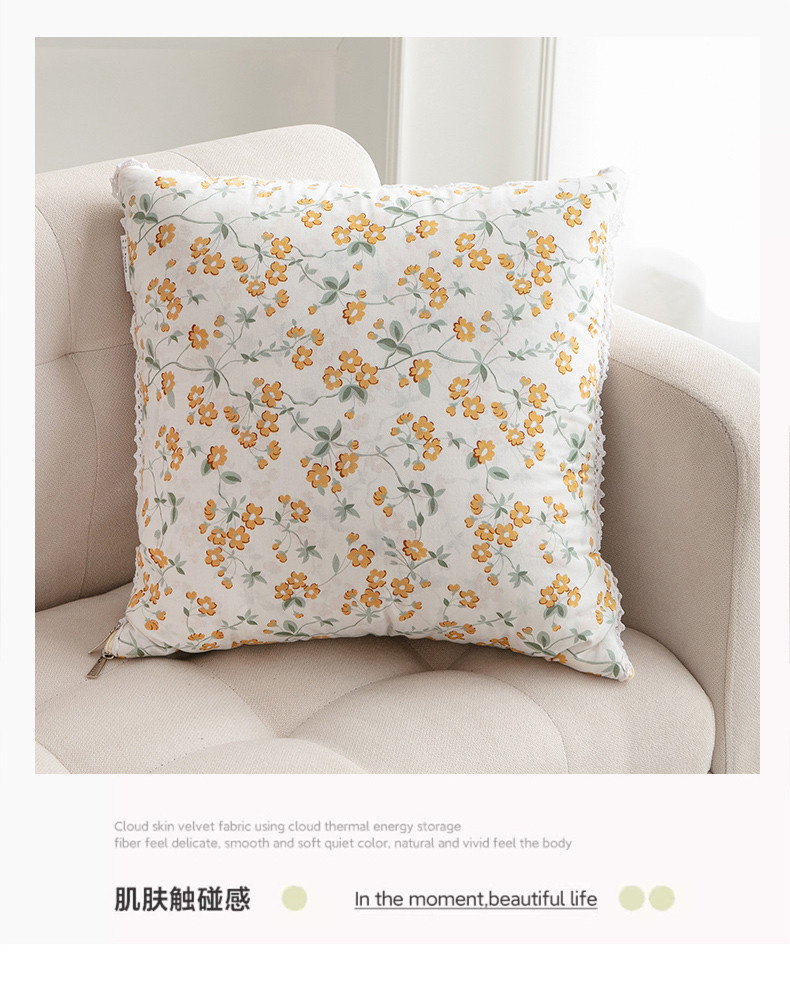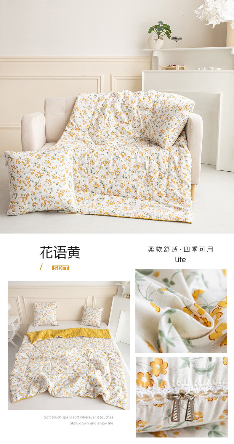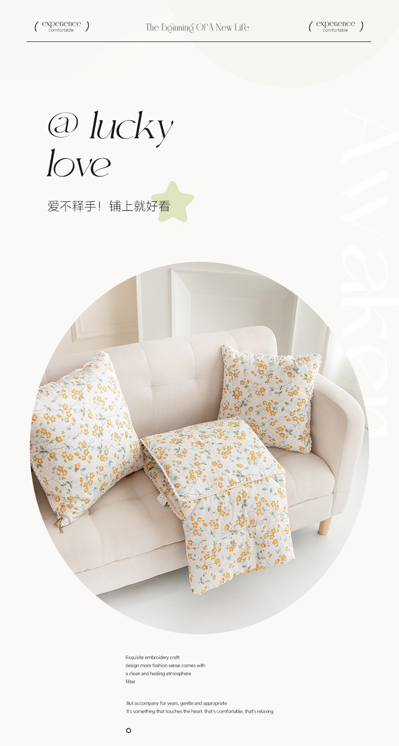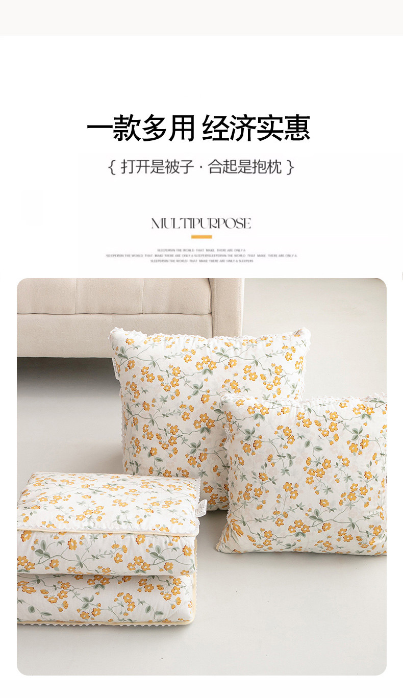 翰轩家居 2022新款全棉印花小清新豆豆绒抱枕被 花语黄