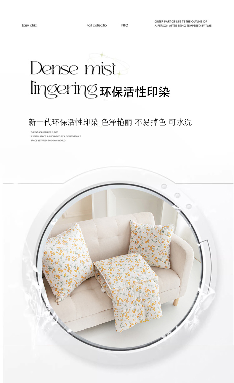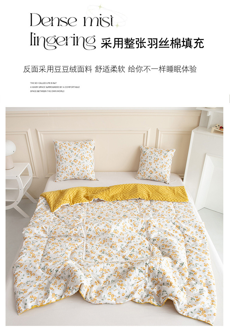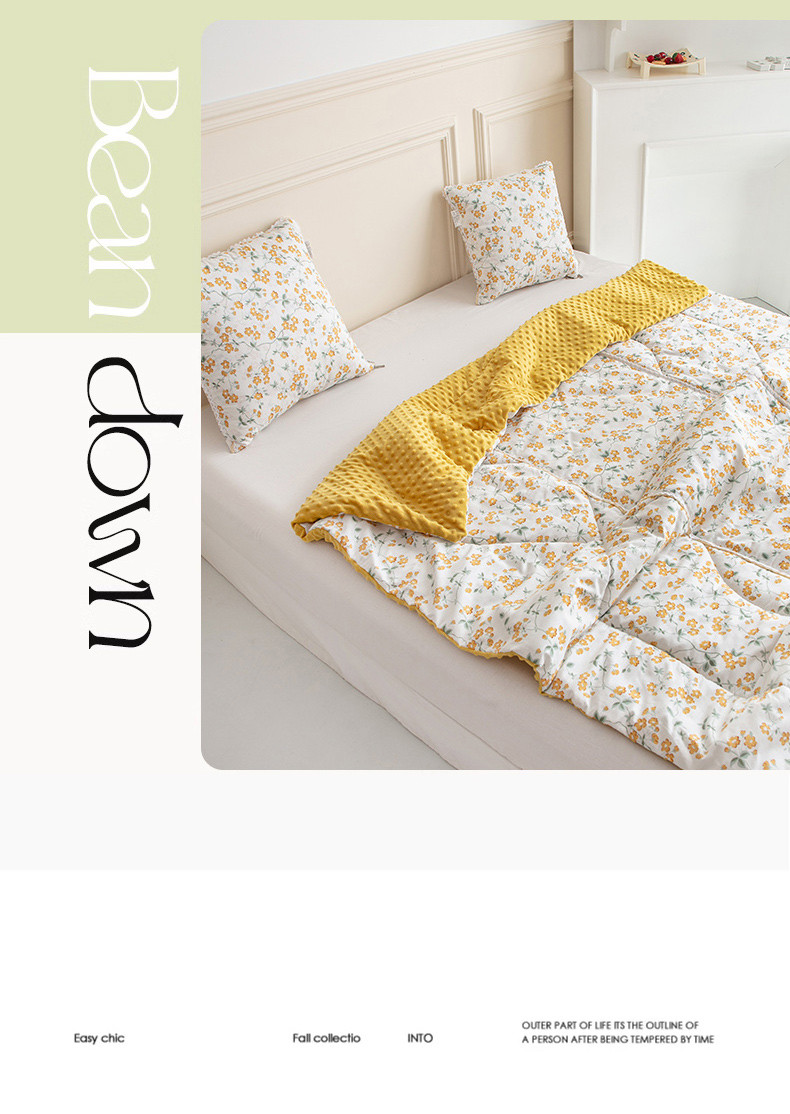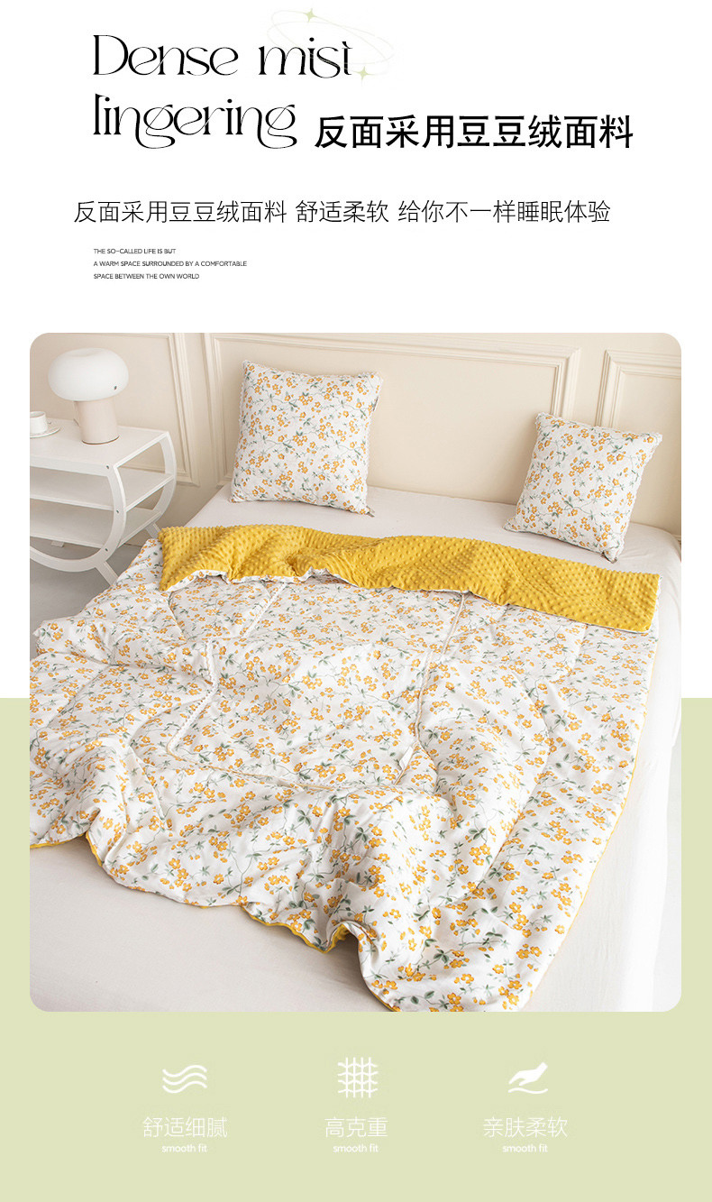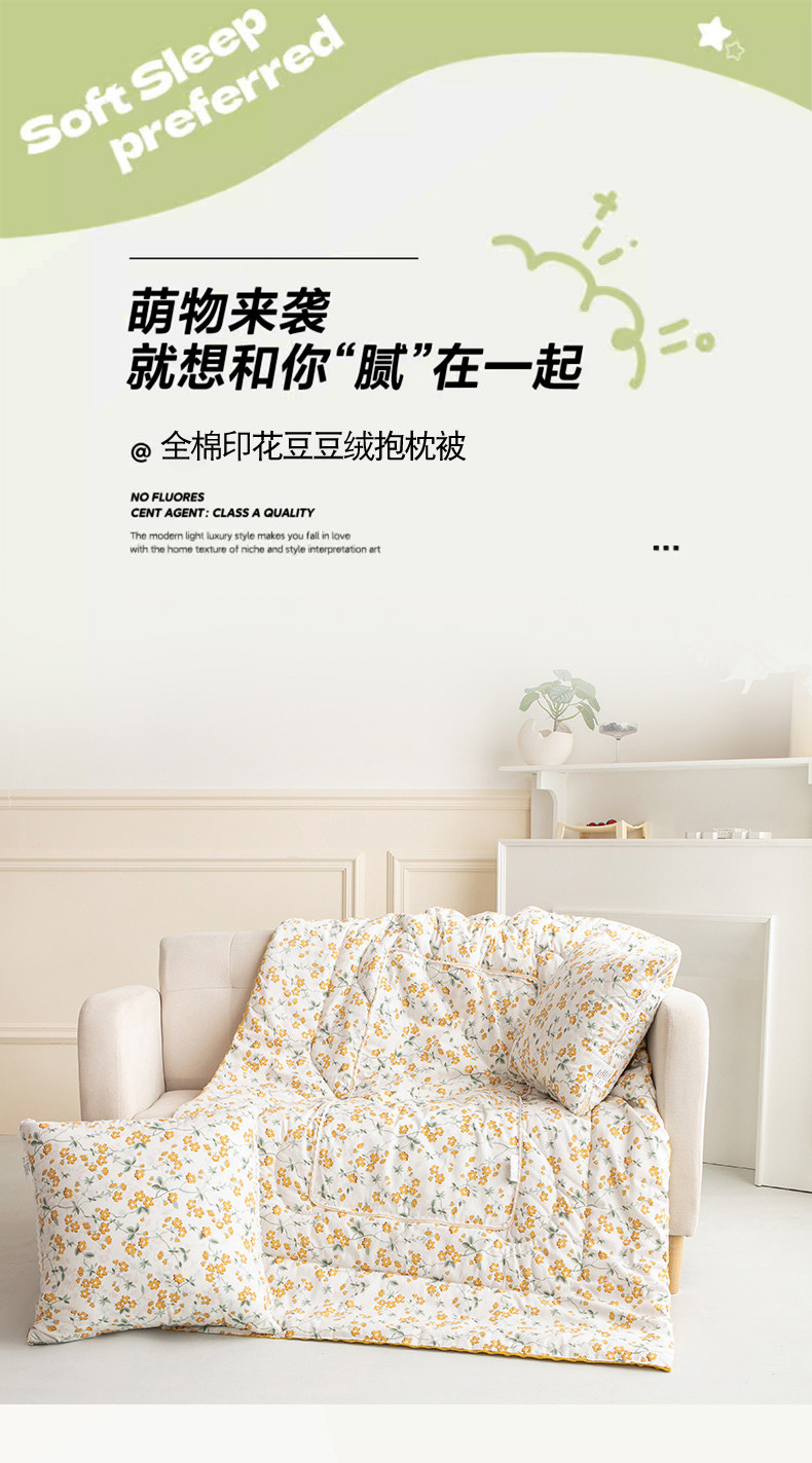 商品名称:翰轩家居 2022新款全棉印花小清新豆豆绒抱枕被 花语黄