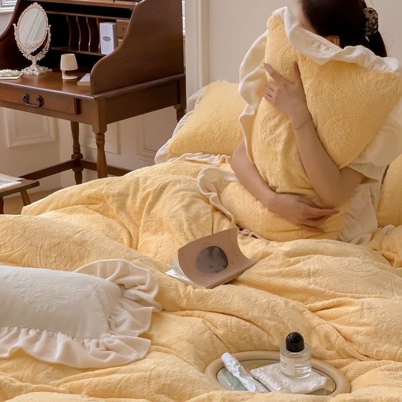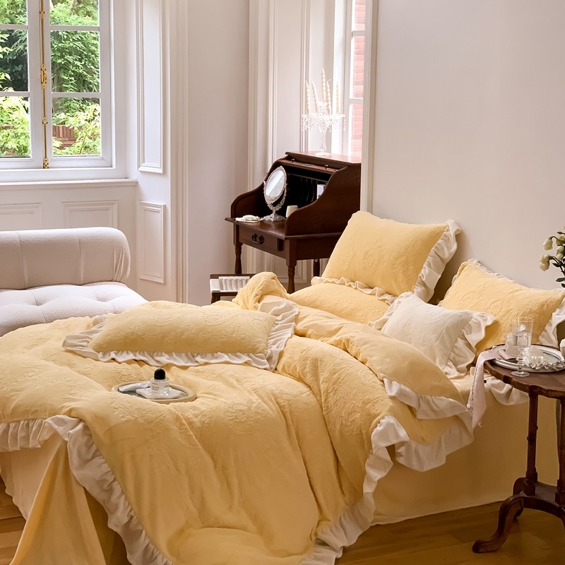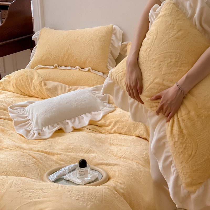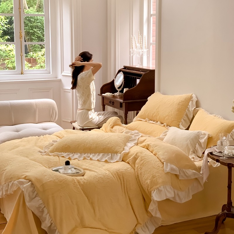 商品名称:馨蕊2022新款秋冬轻奢煦暖绒系列四件套-克拉 克拉-柠檬黄