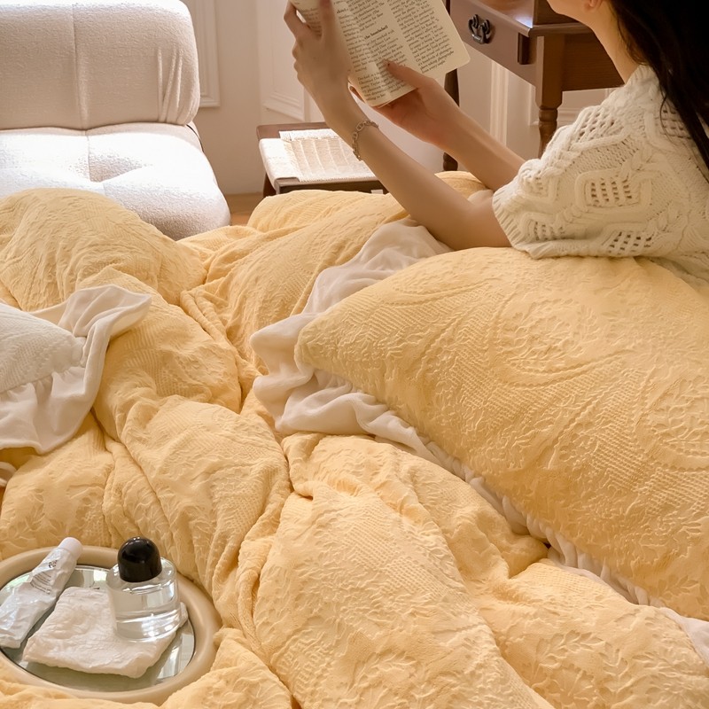 馨蕊2022新款秋冬轻奢煦暖绒系列四件套-克拉 克拉-柠檬黄