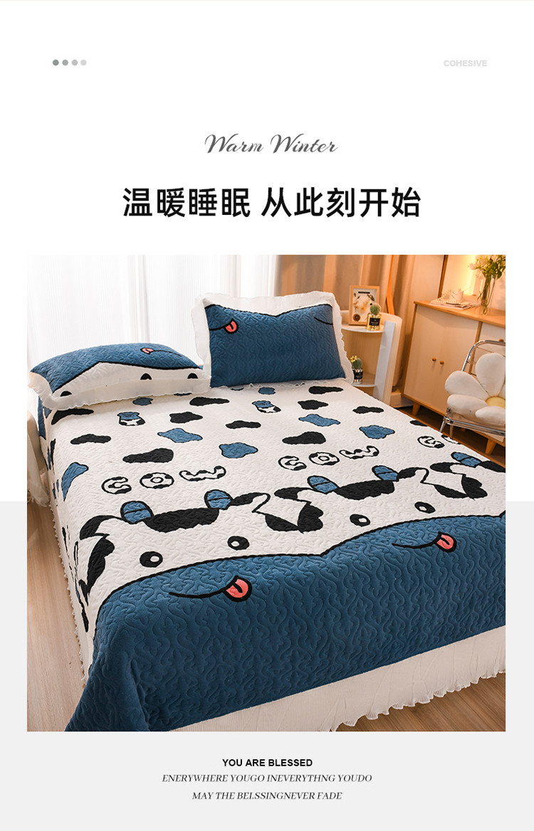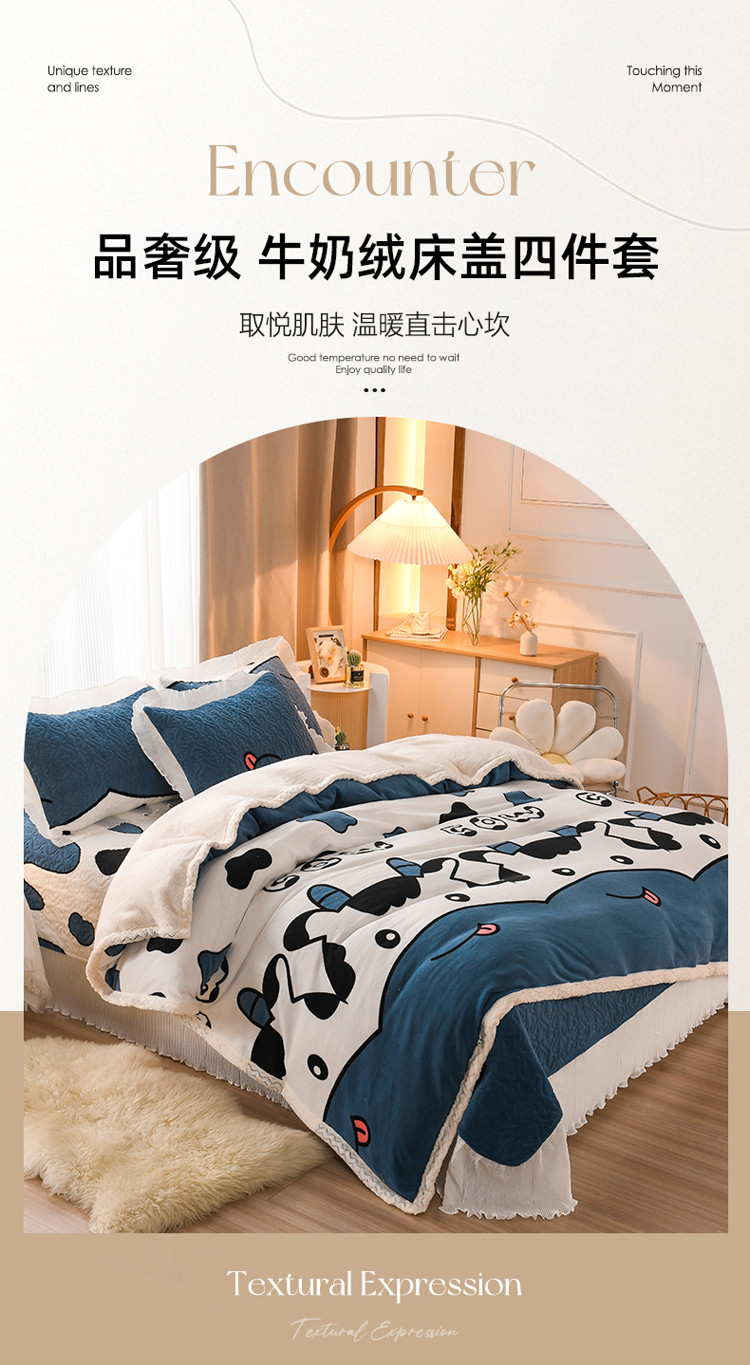 迷仙巢 2022新款牛奶绒床盖款四件套 小奶牛