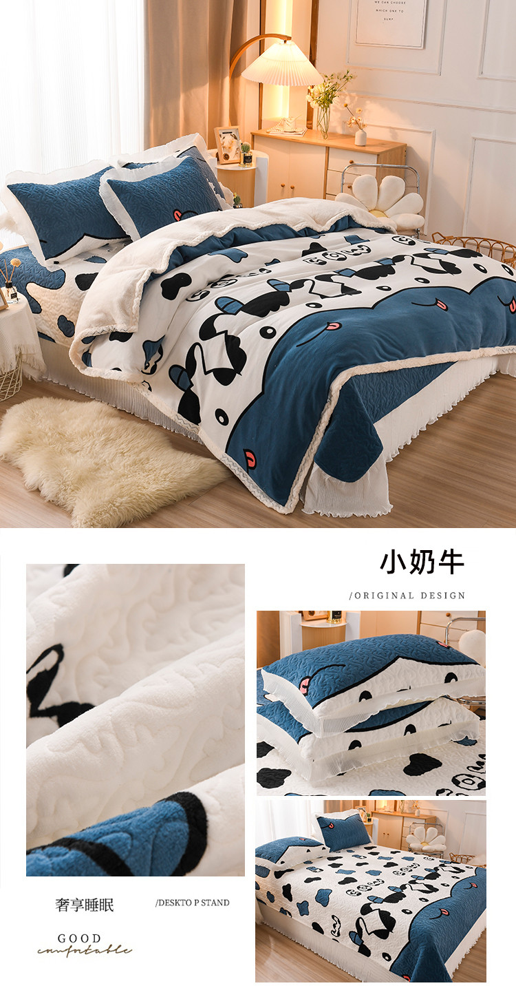 商品名称:迷仙巢 2022新款牛奶绒床盖款四件套 小奶牛