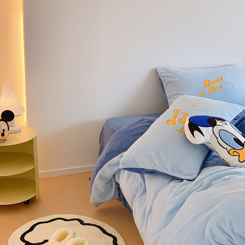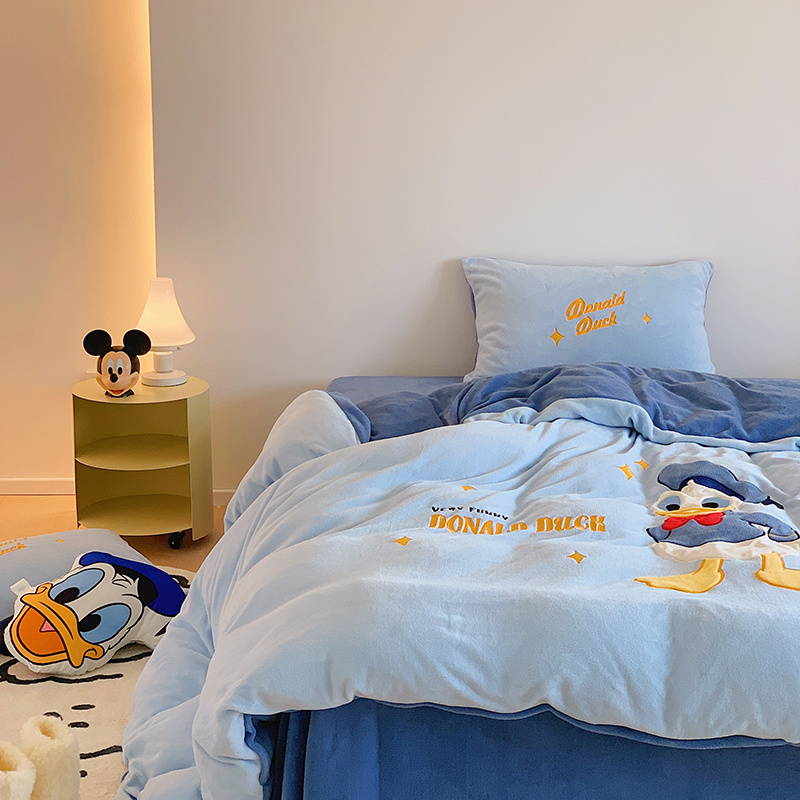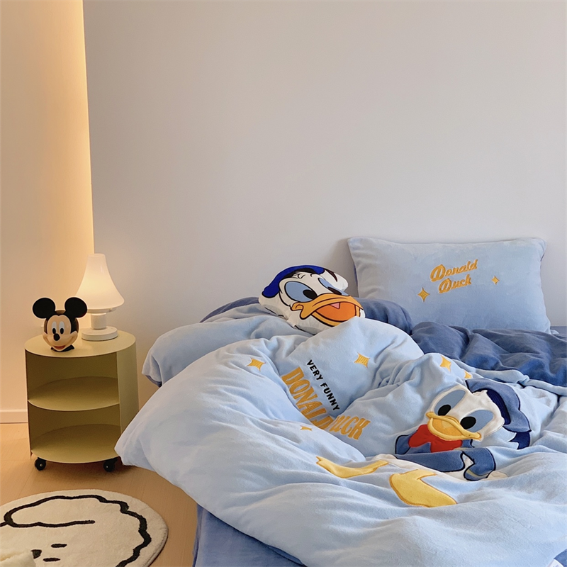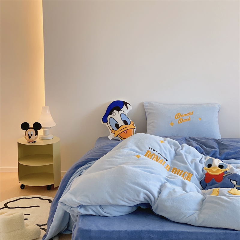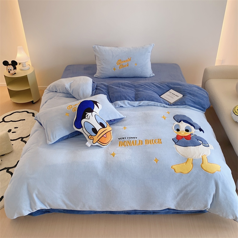 商品名称:星期八 2022新款230g双面牛奶绒迪士尼刺绣四件套 唐老鸭