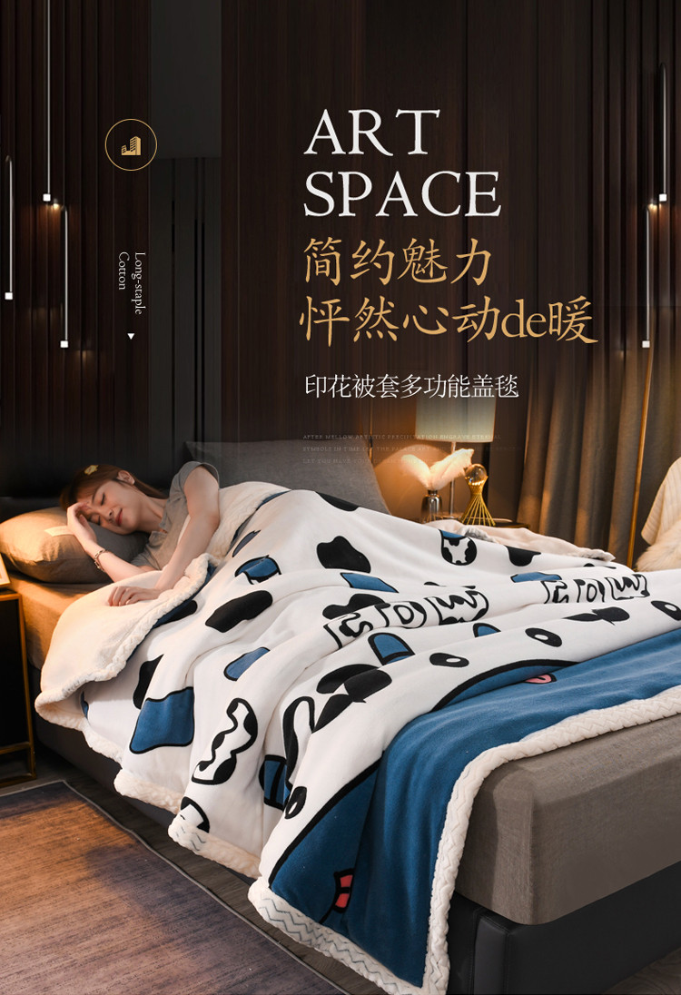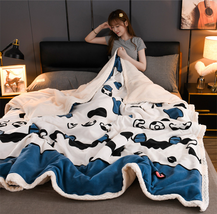 迷仙巢 2022新款牛奶绒拼北极绒盖毯 小奶牛