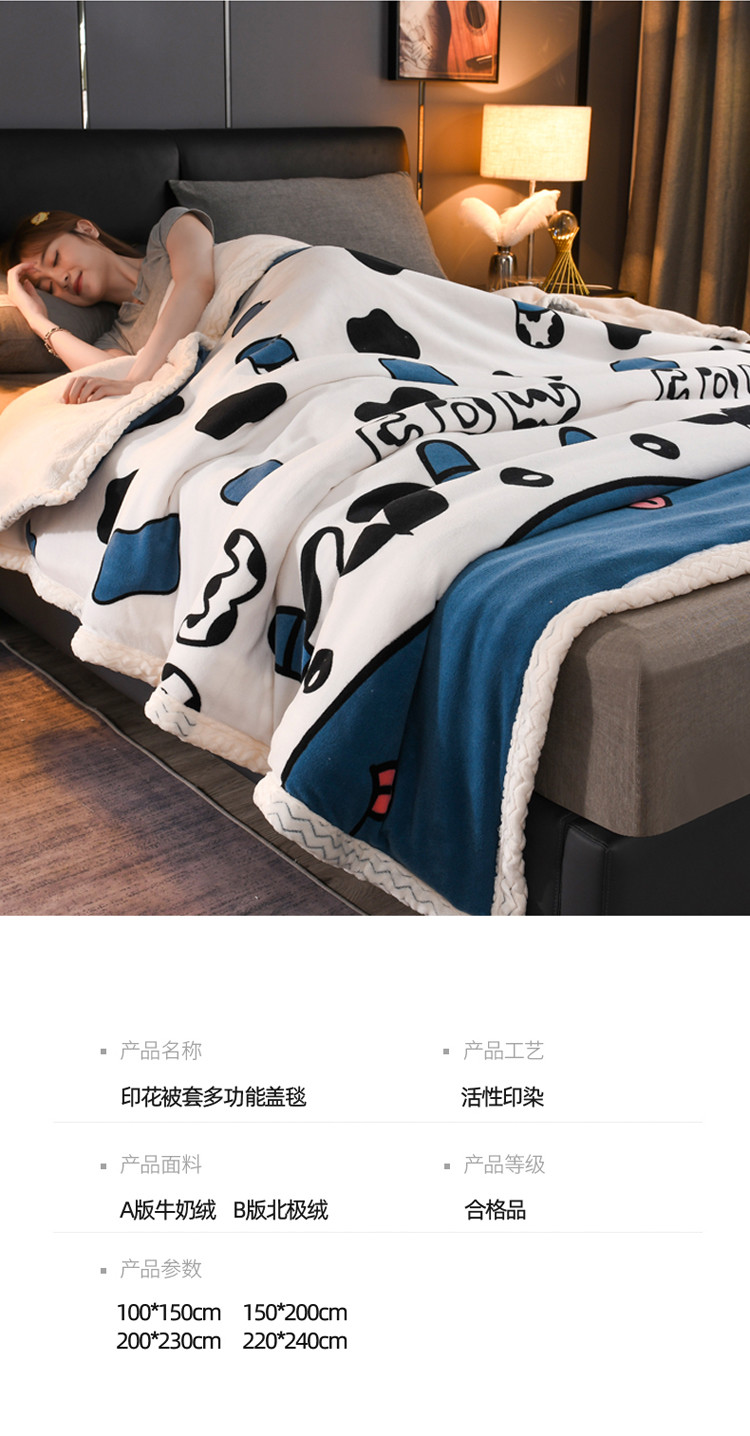 商品名称:迷仙巢 2022新款牛奶绒拼北极绒盖毯 小奶牛