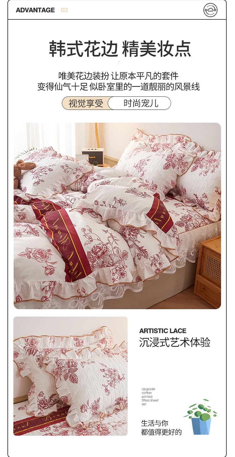 当前位置: 91家纺网 > 商品网购 > 床品套件 > 四件套 > 全棉普通四件套 > 宜凡 2023新款四季款夹棉小清新床笠四件套 写意