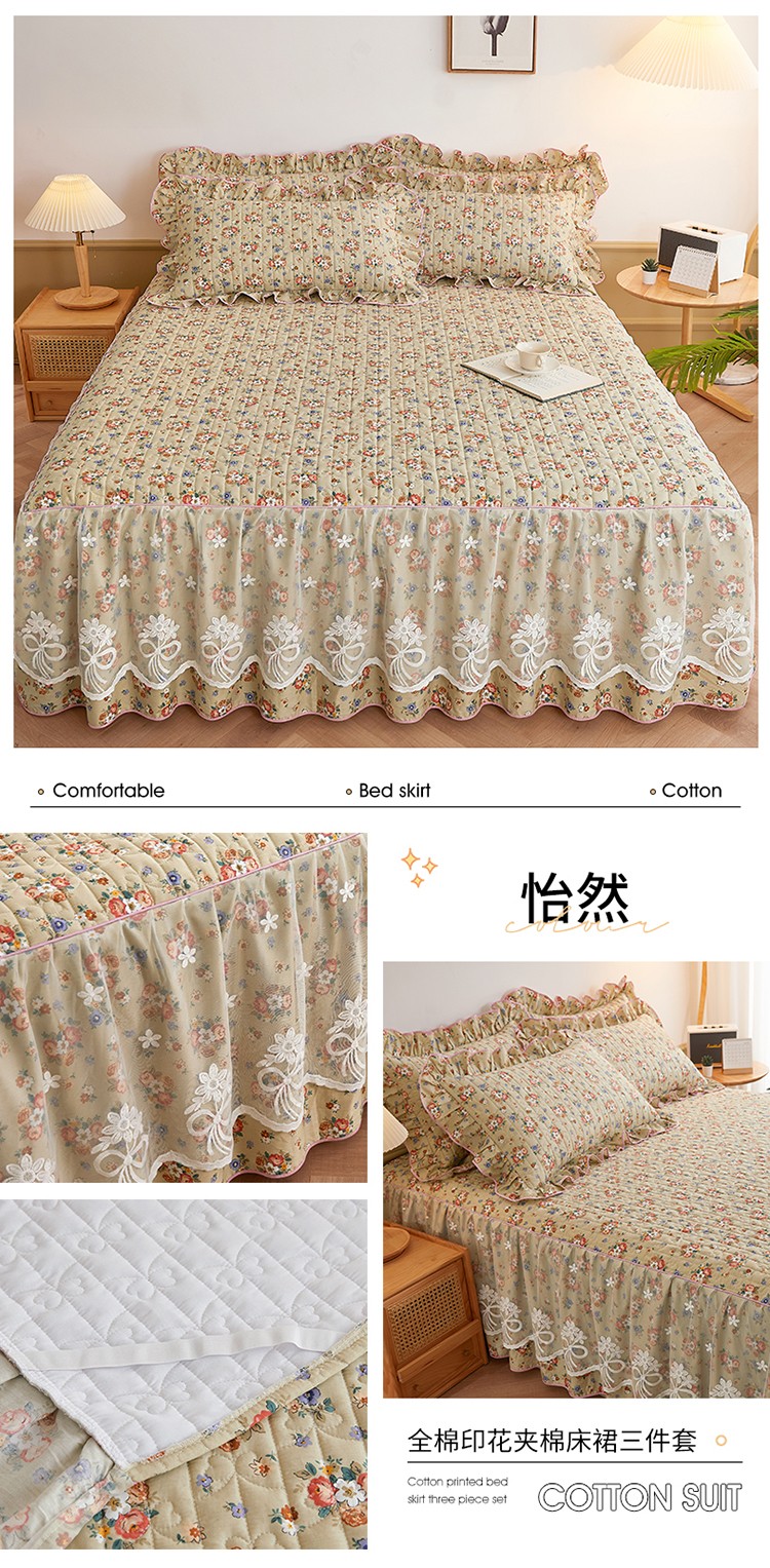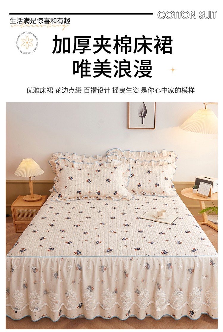 (总)宜凡 2023新款四季款全棉夹棉床裙三件套