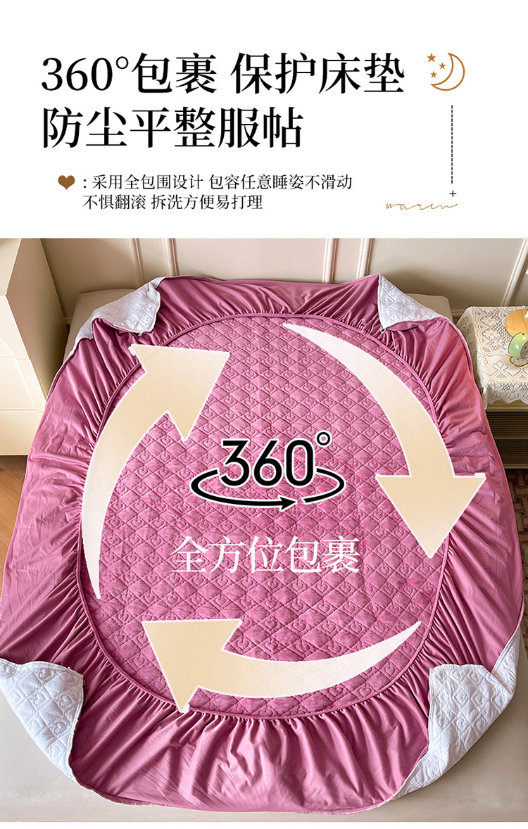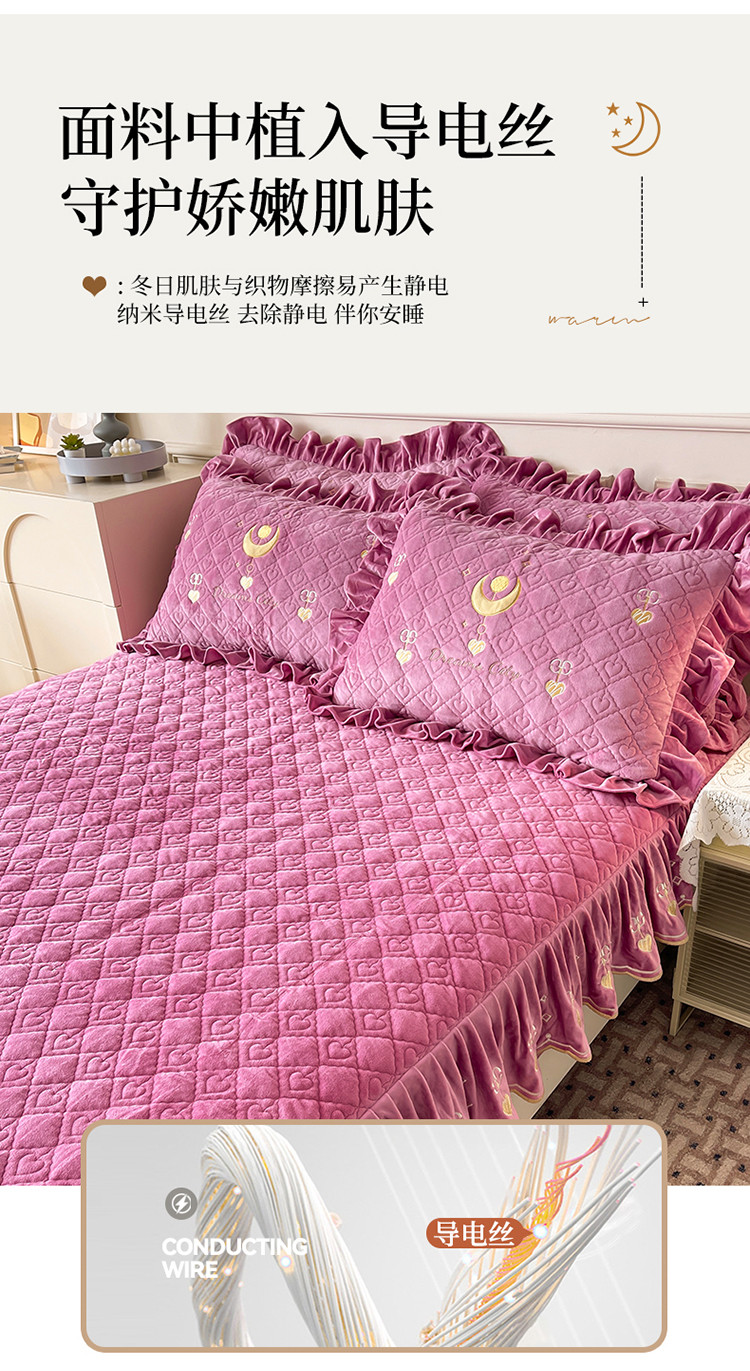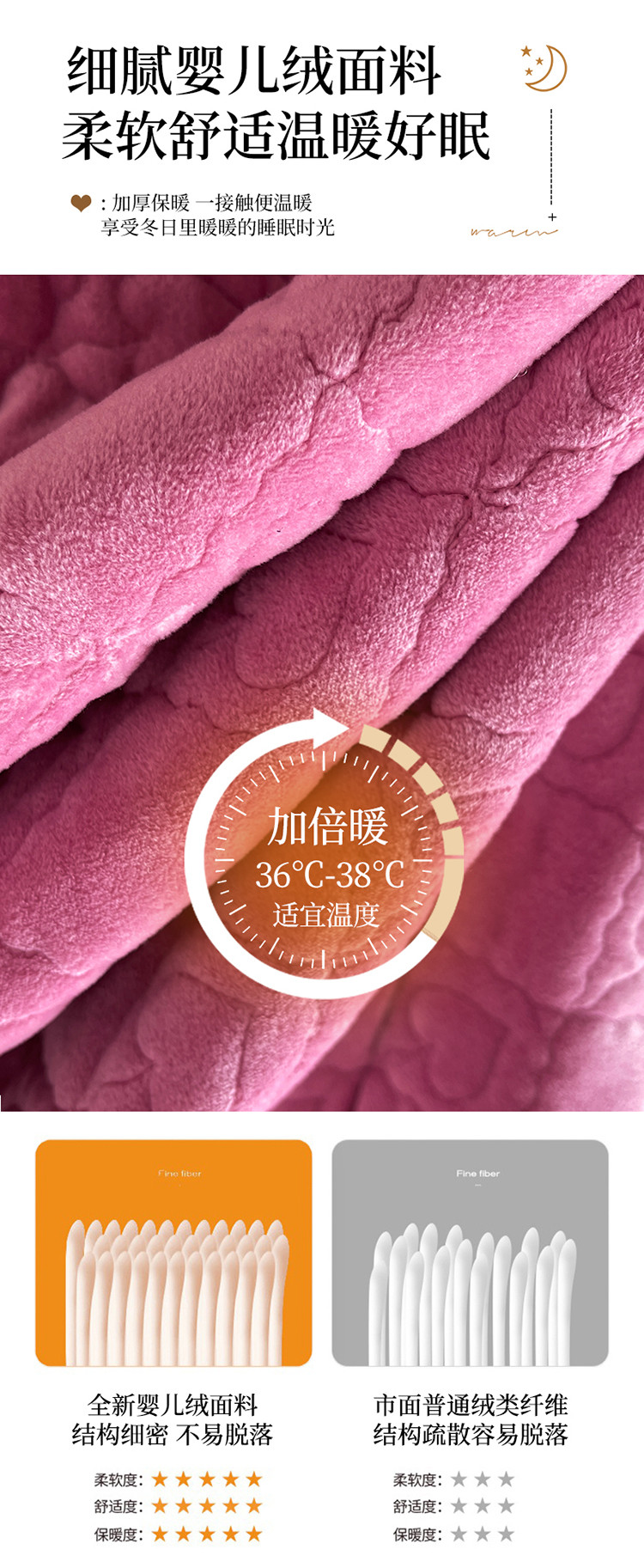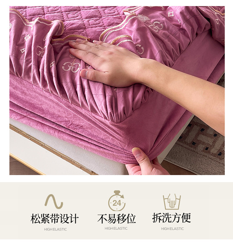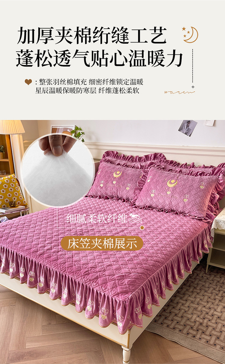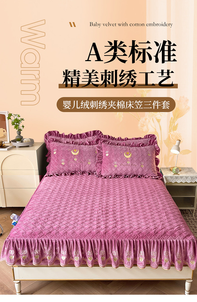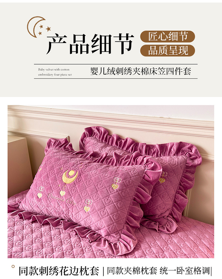 宜凡家纺 2022新款婴儿绒A类床笠三件套 星悅-玫红