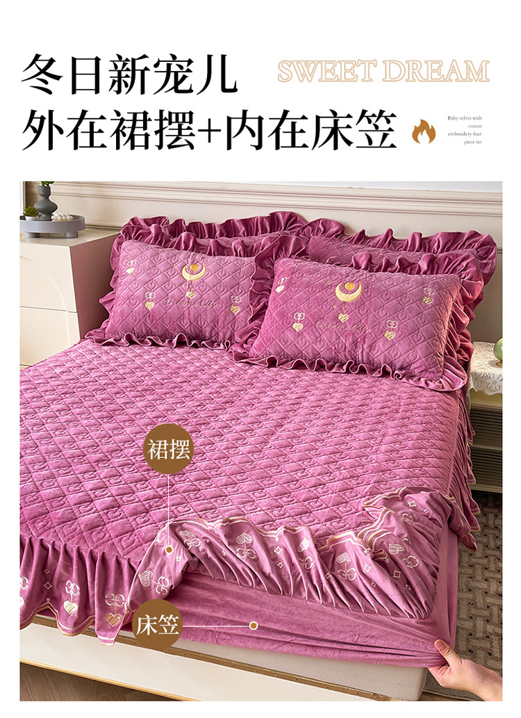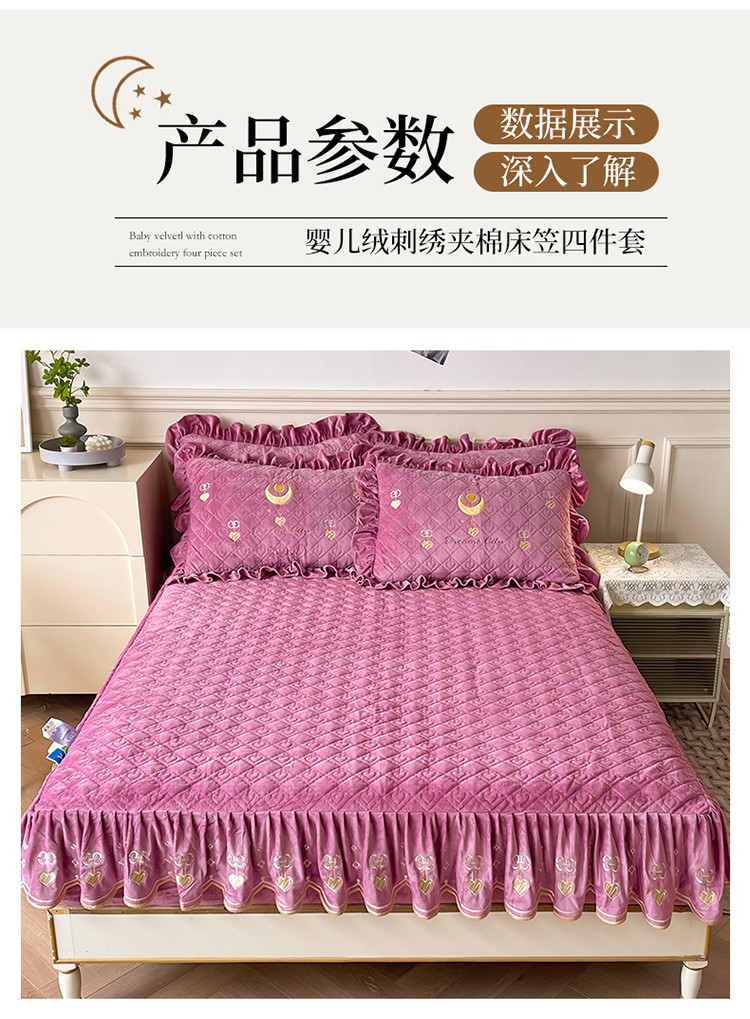 (总)宜凡家纺 2025新款兔绒提花牛奶绒夹棉床裙四件套,爱心 少女粉,爱心 粉紫,爱心 驼色,蝶舞 大红,蝶舞 米色,蝶舞 浅紫,蝶舞 玉色,简爱 苍青,简爱 豆沙紫,简爱 玉色,樱桃 苍青,樱桃 豆沙紫,樱桃 奶油白